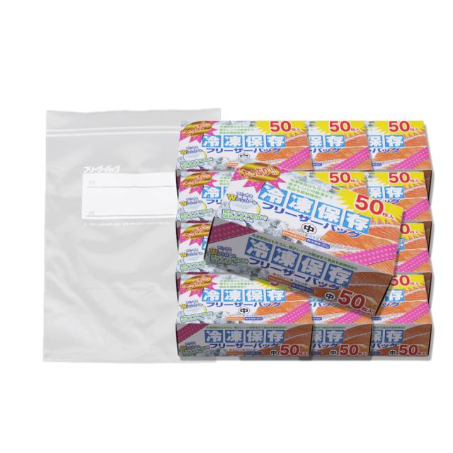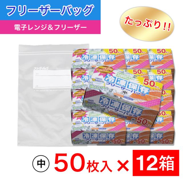 たっぷり冷凍保存 フリーザーバッグ Wジッパー 中50枚入 ×12箱セット 電子レンジ 解凍
