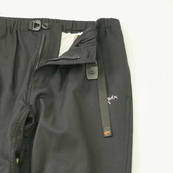 ROKXパンツの特徴である股下のガゼットクロッチやウエストのウェビングベルト、