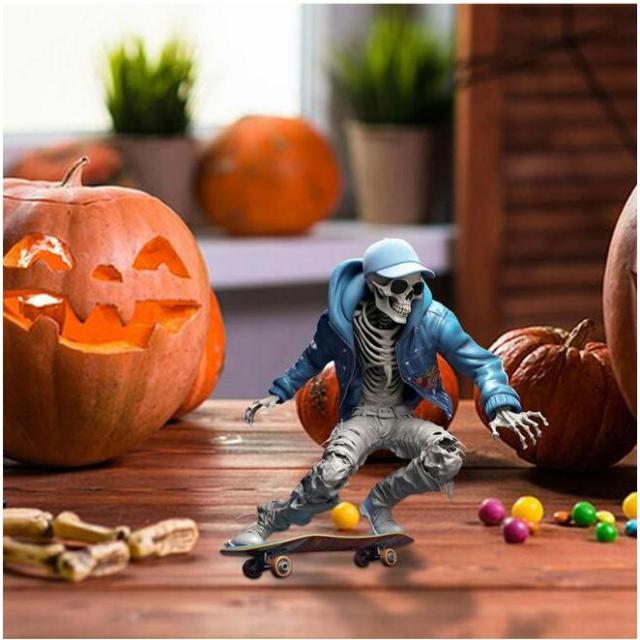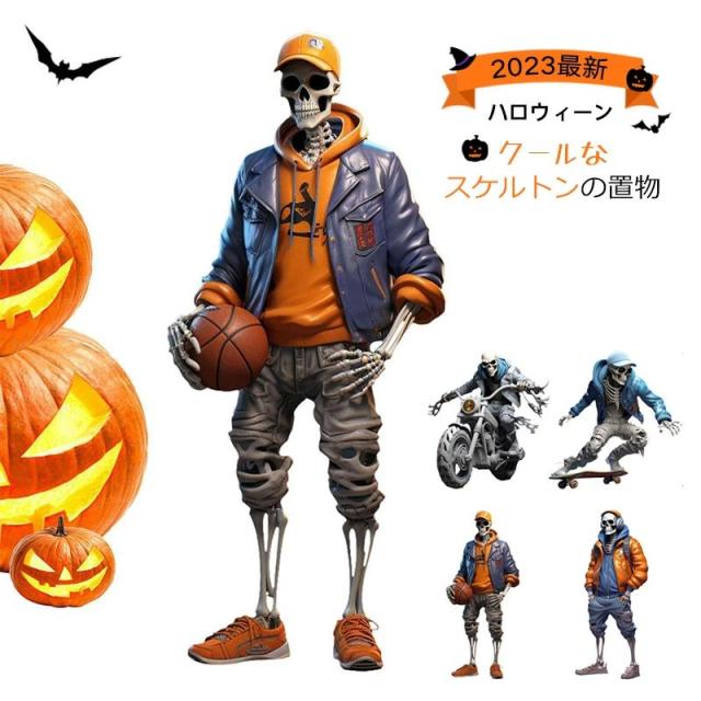 [ 不気味なスカルの置物 ] スタイリッシュでクールな骸骨の置物であなたのユニークな個性をアピールしましょう!ハロウィンの装飾に最適で、バスケットボール、バイク乗り、スケートボードのテーマが特徴です。耐久性のある樹脂で作られており、屋内と屋外の両方のディスプレイに適しています。
