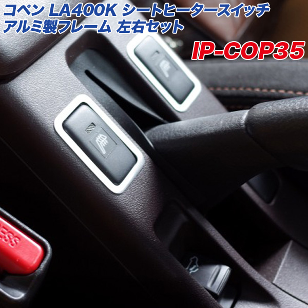 アルミパネル工房 ダイハツ コペン LA400K シートヒータースイッチ アルミ製フレーム 2個入り ヘアライン仕上げ IP-COP35