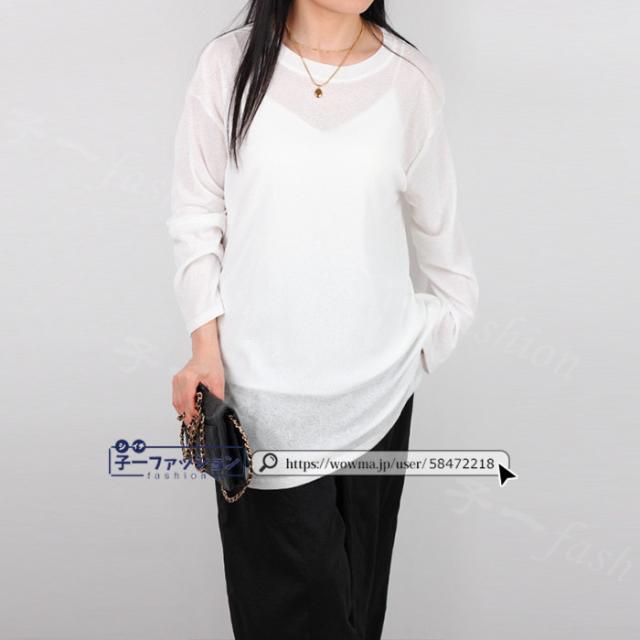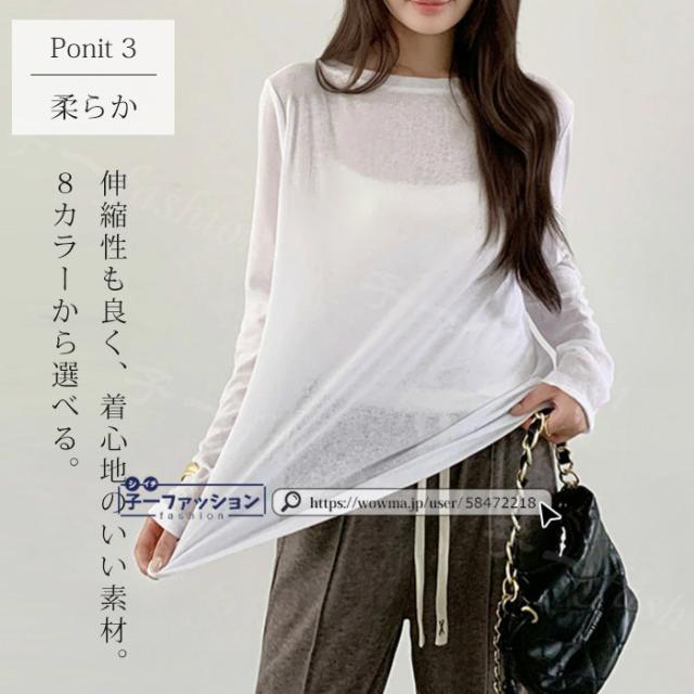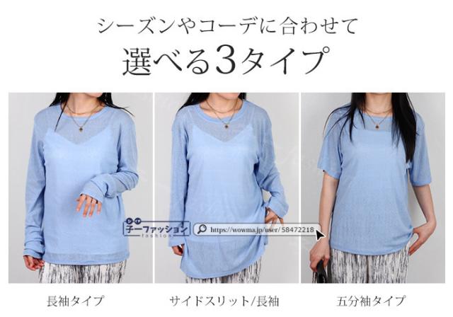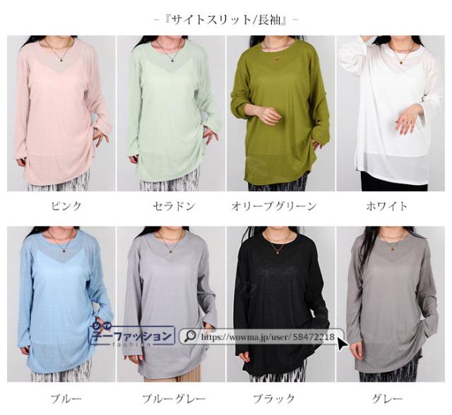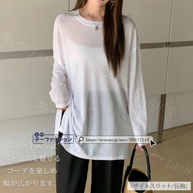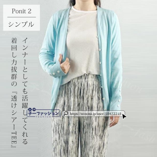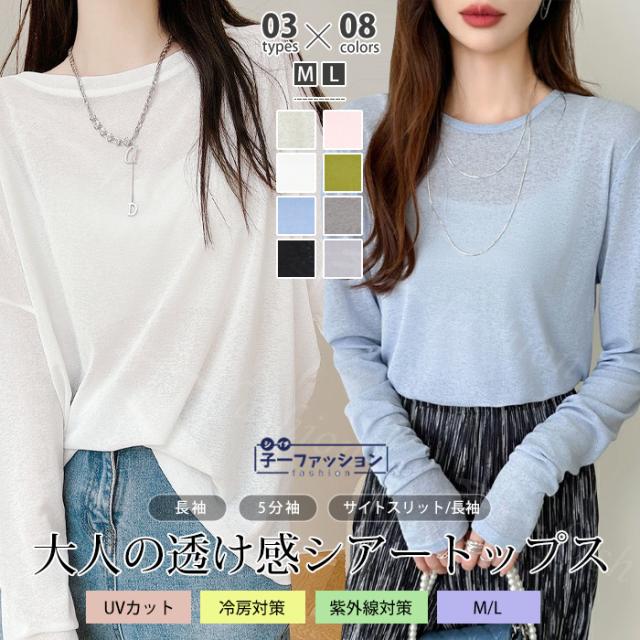 <1点あたり1,290円!2点同時購入&クーポン利用で> シアートップス 選べる3タイプ 五分袖 長袖 サイドスリット レディース tシャツ重ね着 レイヤード 無地 シアーロングT シアーTシャツ カットソー プルオーバー着回し 春夏 秋冬 20代 30代 40代 50代