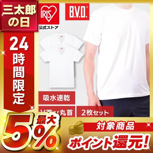 半袖シャツ インナー 2枚組 BVD 丸首・V首半袖シャツ2枚組 (メール便) インナー メンズ BVD 丸首 Uネック Vネック 半袖 2枚組 無地 白 男性用 tシャツ 送料無料