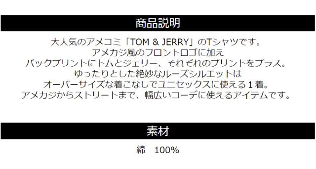 誰もが知ってるキャラクター「トムとジェリー」のプリントTシャツ ルーズなシルエットがユニセックスで着れるビッグtee 24aw M L XL