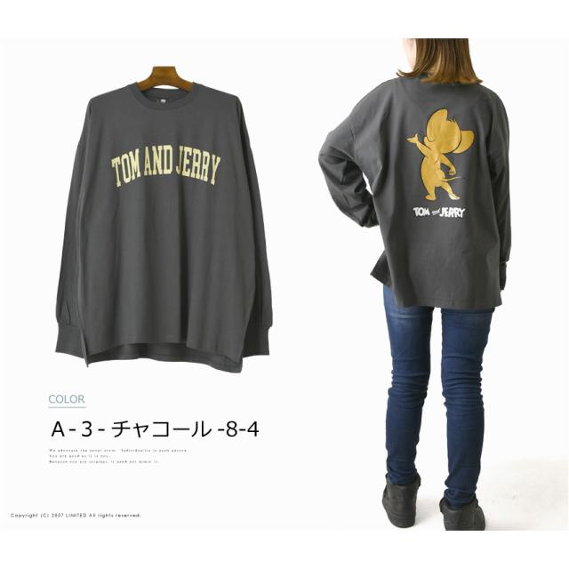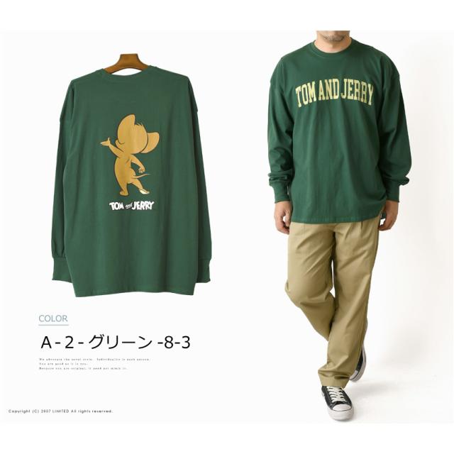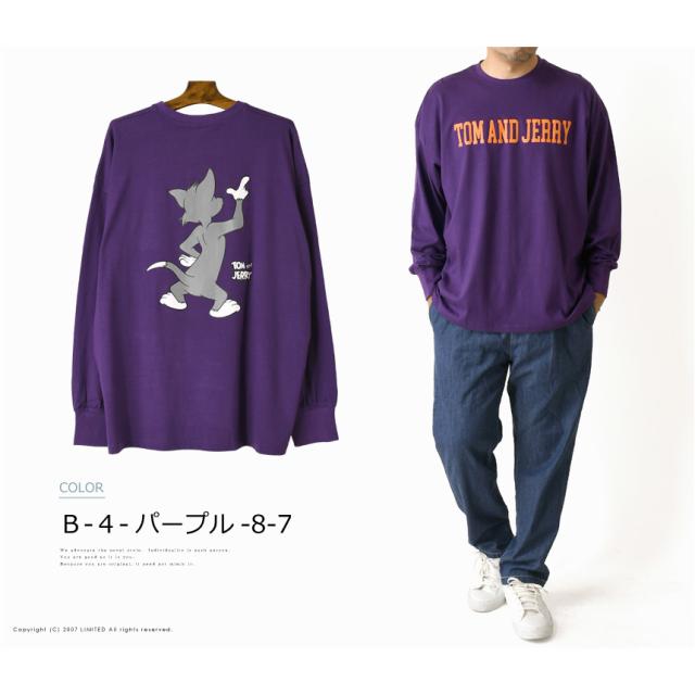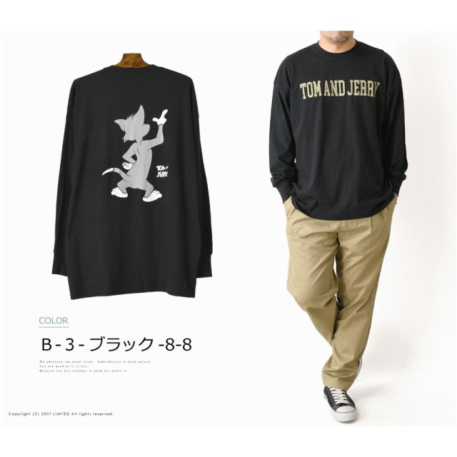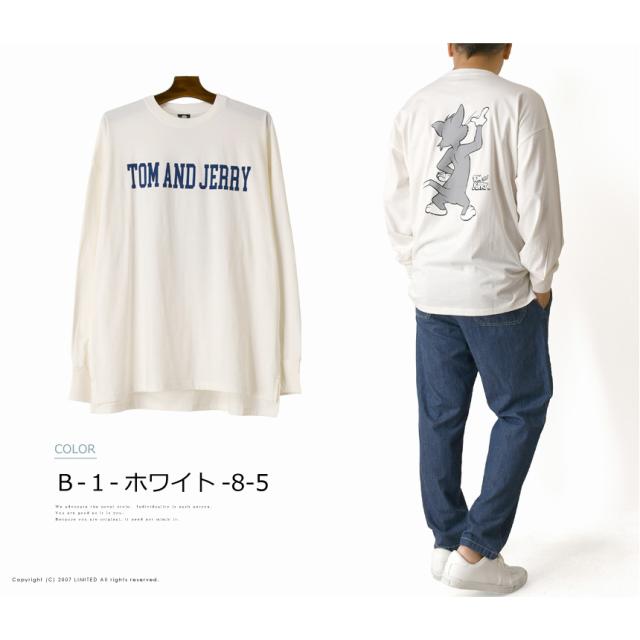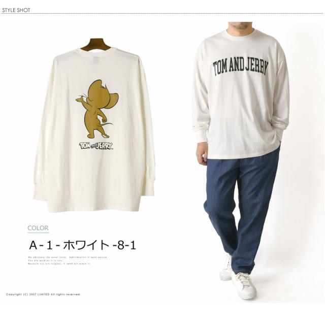 TOM & JERRY トムとジェリー アメコミ バックプリント 長袖 tシャツ メンズ ビッグT ユニセックス ビッグシルエット ストリート 【H4-1195】 送料無料 通販A15