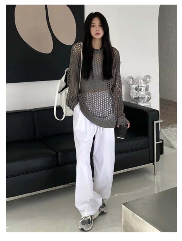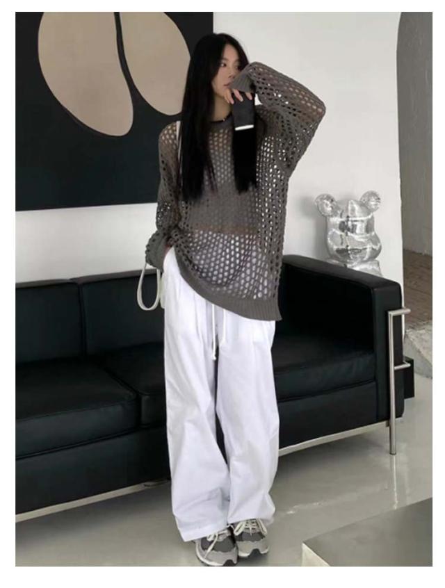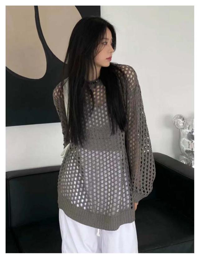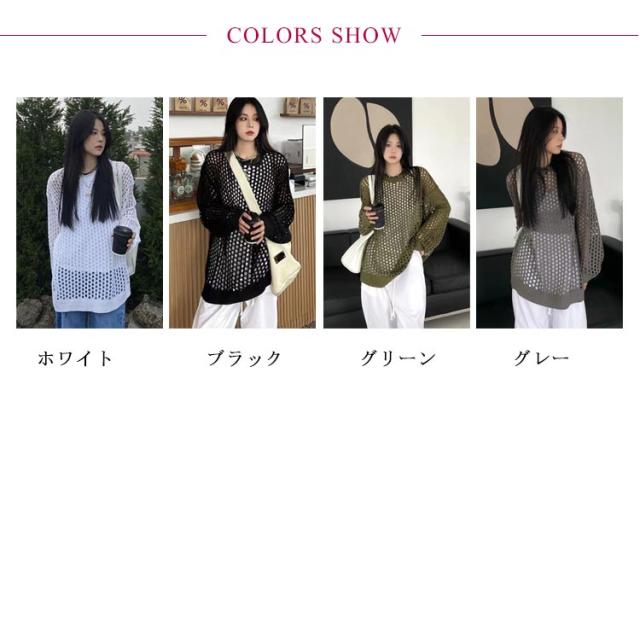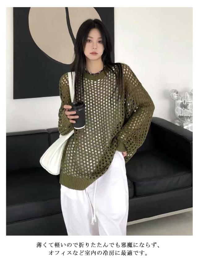 レディース プルオーバー 無地 春秋 ゆったり メッシュ トップス 透け感 薄手 シースルー 長袖 ニットセーター カジュアル 可愛い 体型カバー 透かし編み