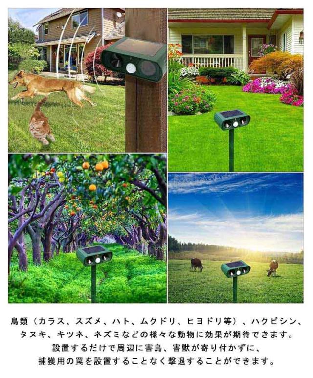 猫よけ対策 ライト付き ソーラー充電 カラスよけ 音 庭 センサー ソーラー式 動物撃退器 猫除け 猫対策 猫退治 猫よけグッズ 防鳥 猫撃退 糞尿対策 害獣撃退 野良猫 庭 強力 鳥獣対策 フラッシュライト 野良犬退治 ねずみ駆除 超音波