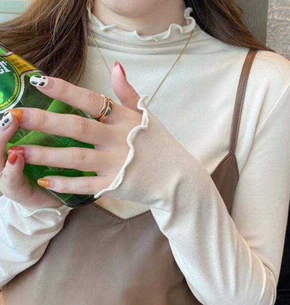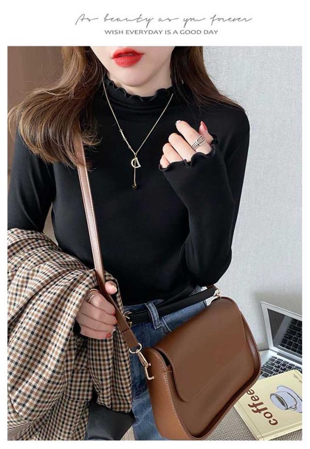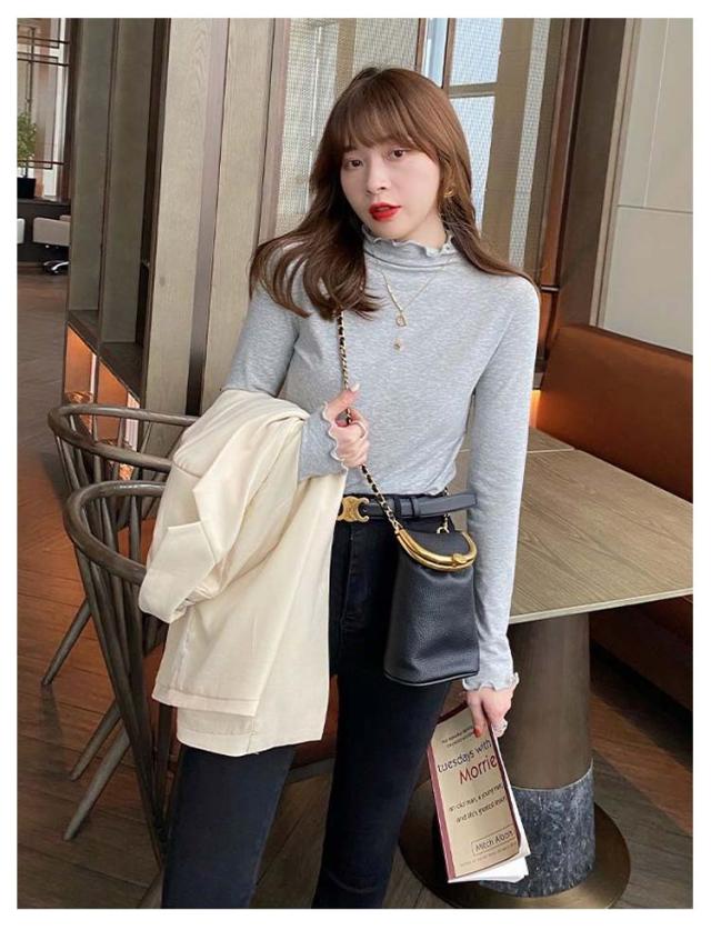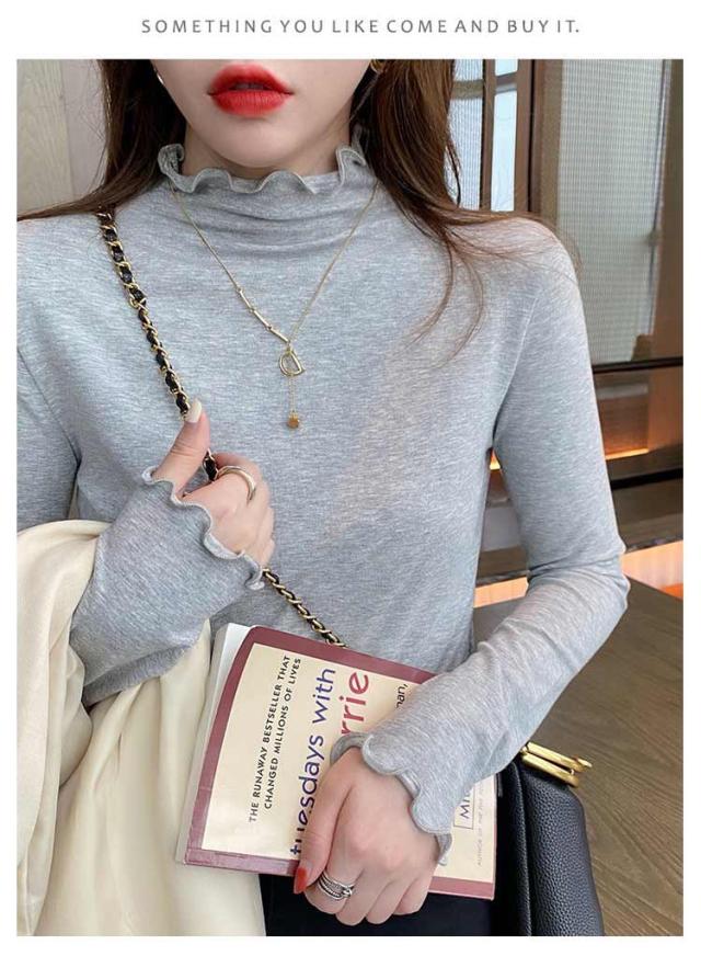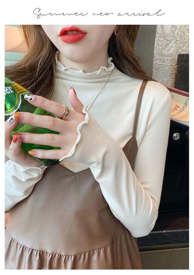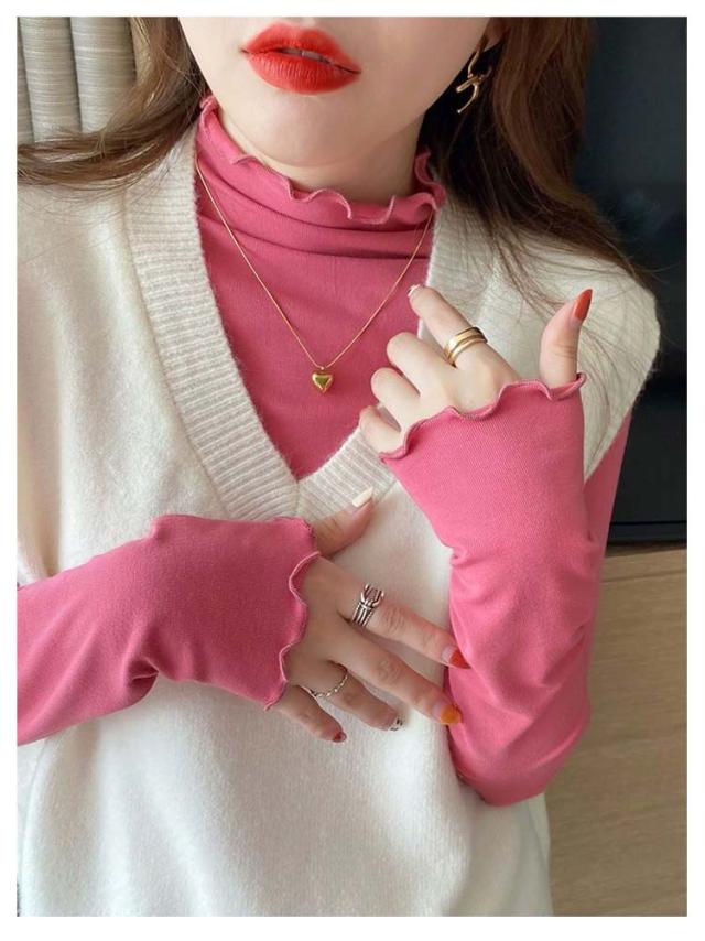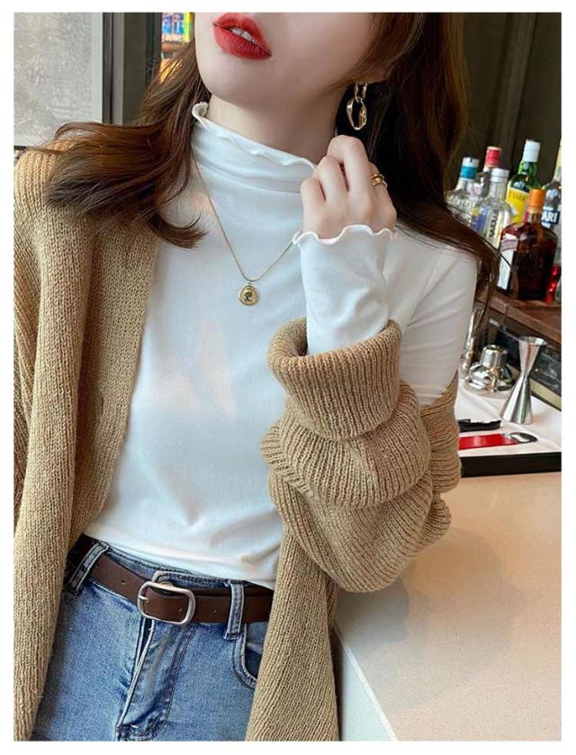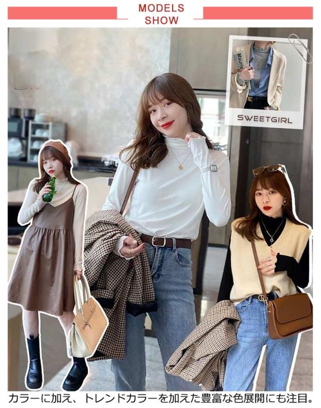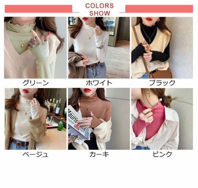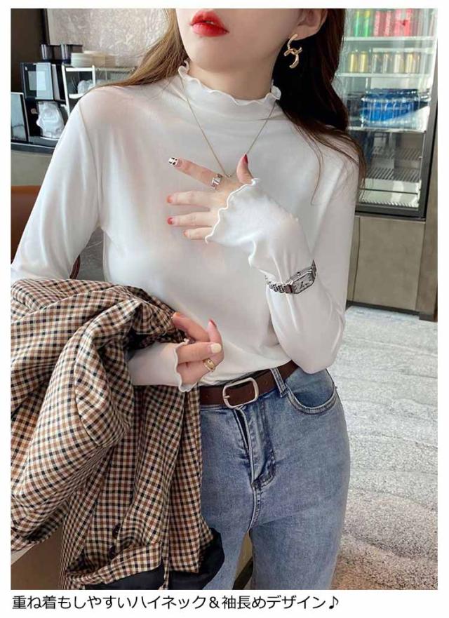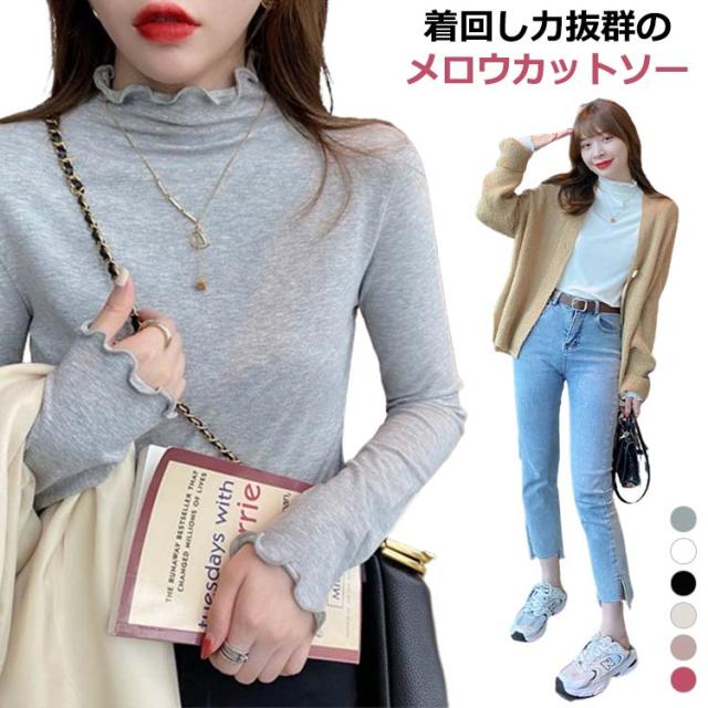 カットソー メロウ インナー インナーニット タートルネック 綿 ハイネック 冬 長袖 カットソー Tシャツ 冬 フリル袖 レディース 春 通勤 秋 OL トップス 無地 カジュアル エレガント きれいめ 重ね着 着回し力抜群 ブラウス