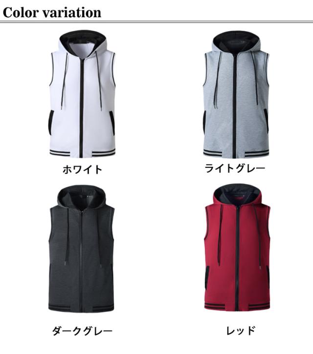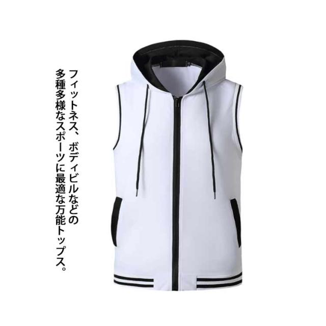 ベスト スウェットベスト ノースリーブパーカー 袖なし カジュアル ジップアップパーカー スウェットパーカー メンズ フード付き Tシャツ ジップアップ パーカー 送料無料 細身 フィットネス ジム スポーツウエア 前開き