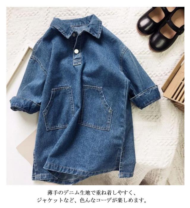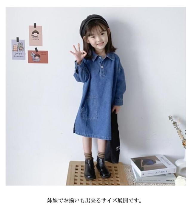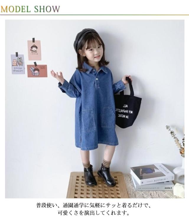 キッズ デニムシャツワンピース ワンピース 幼稚園 着回し シャツワンピ デニムシャツワンピース 長袖 女の子 子供服 ジュニア 冬 小学生 中学生 ジュニア おしゃれ 子ども服 デニム ガールズ 韓国子供服 90cm 春 夏 秋 可愛い シャツ 100cm 110cm 120cm 130cm ガールズ