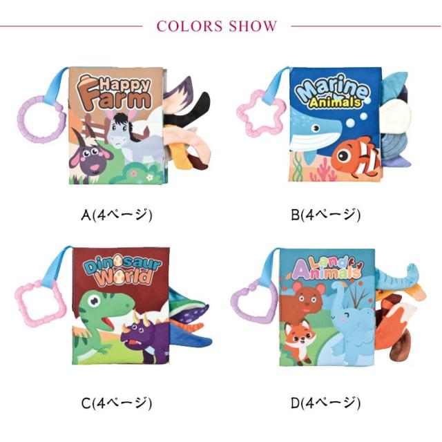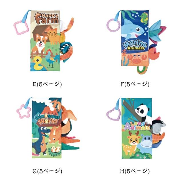 | 【布絵本】【知育玩具】【選べる8type】 知育効果いっぱい!遊んで「視覚」「触覚」「聴覚」を育つ! ★初めての絵本に!赤ちゃんがよろこぶ音の仕掛けの布絵本。 シャカシャカ音のするページ、めくったりつかんだりひっぱったり、指先を動かしながら、目と脳の発達をうながします。 赤ちゃんが大好きな音のしかけとやさしいさわりごこちの布絵本。 かわいい動物イラストと英単語で表現しています。 水洗いができるので衛生的。清潔に保てるので気軽に遊べたり、布の優しい肌触りを楽しめます。 | |