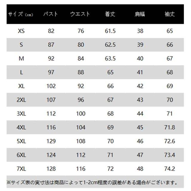 | サイズ | XS S M L XL 2XL 3XL 4XL 5XL 6XL 7XL |