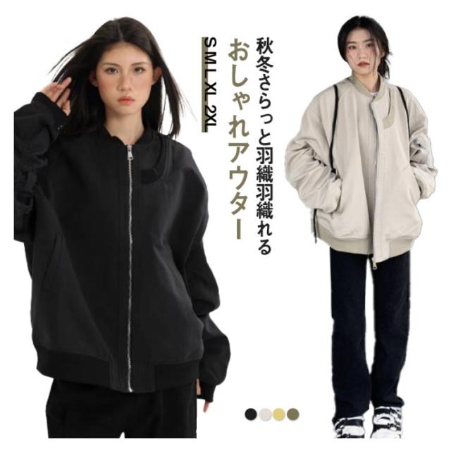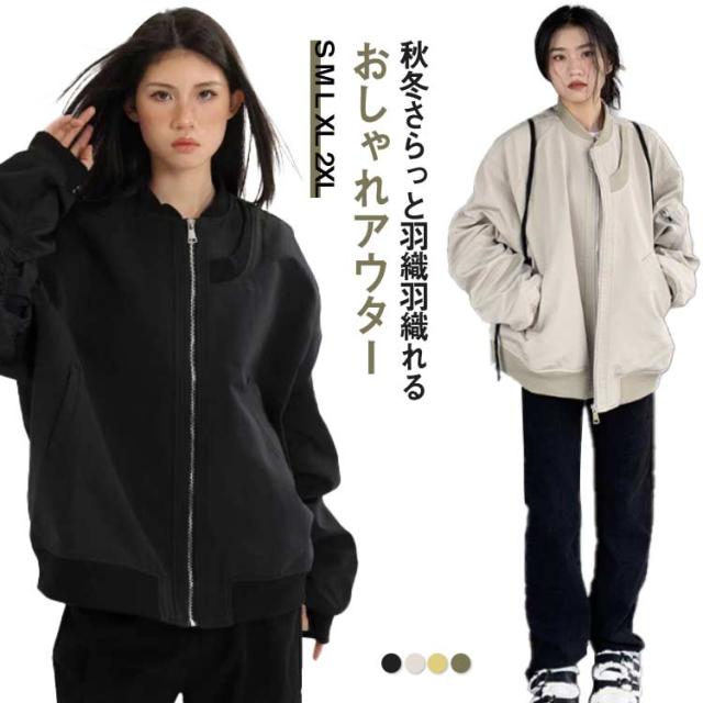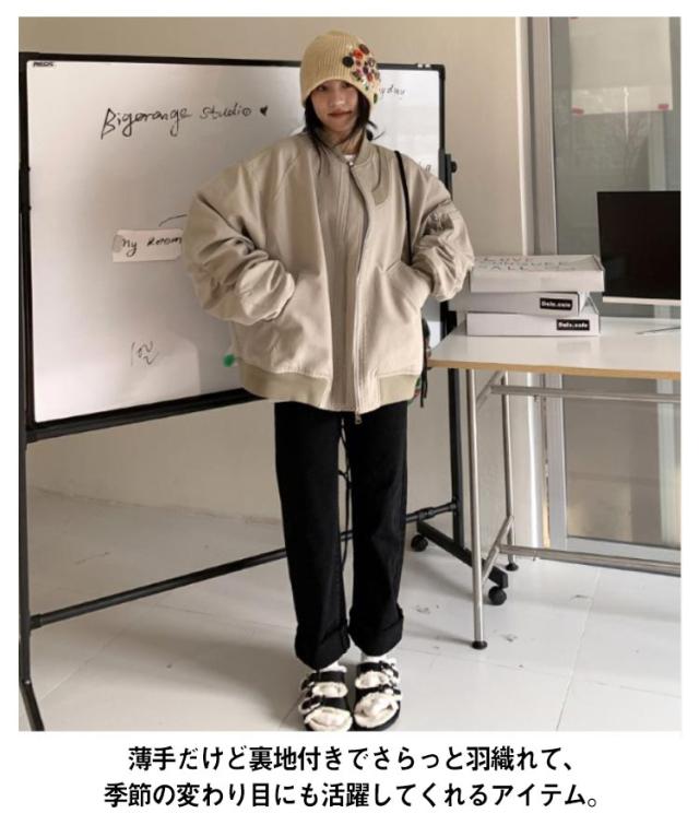 ライトアウター 秋 アウター ブルゾン 大人 秋物 ノーカラージャケット フライトジャケット ファスナー 裏地あり ミリタージャケット 長袖 レディース ブルゾン 羽織り 長袖 ジャケット ブラック 軽アウター カーキ 黒 薄手