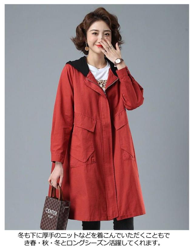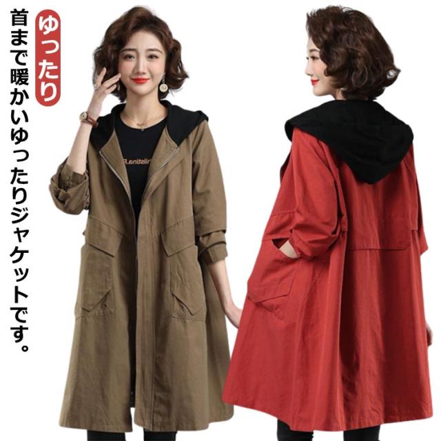 スプリングコート モッズコート マンパ パーカー レディース フード 冬 オーバーサイズ コート ジャケット ロング ビッグシルエット 体型カバー アウトドア ポケット ライトアウター ゆったり きれいめ ロング丈 秋 マウンテンパーカー