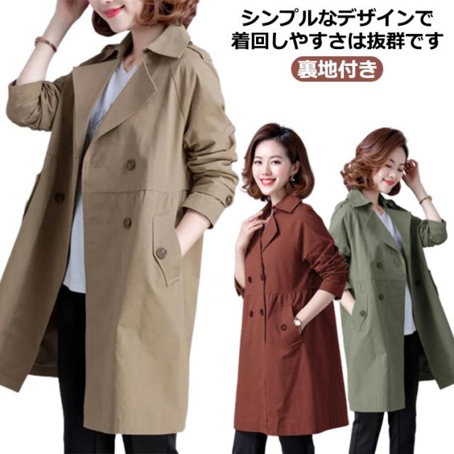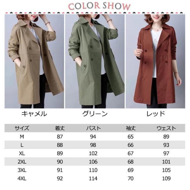 レディース 大きいサイズ トレンチコート ロングコート スプリングコート ロング丈 コート マウンテンコート OL アウター 大人 長袖 ジャケット ママコート 定番 無地 カジュアル 大人 体型カバー 裏地付き 通勤 モッズコート