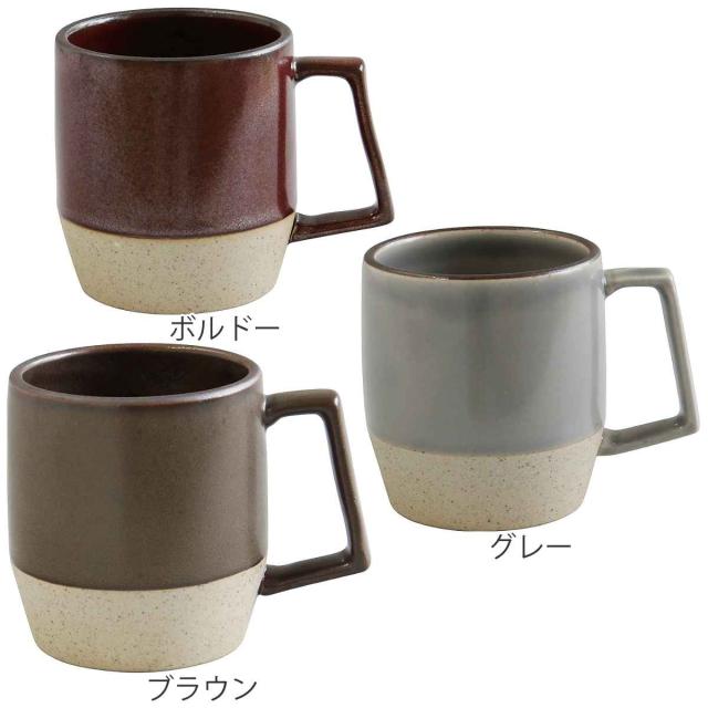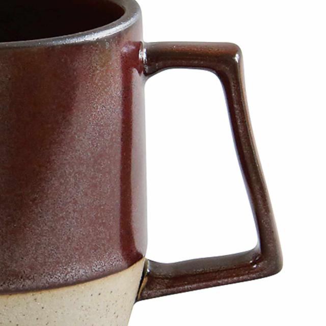 角ばった形状がスタイリッシュなマグカップです。土のぬくもりを感じることができる陶器製です。容量は330mlでコーヒーや紅茶を愉しむのに程良いサイズです。