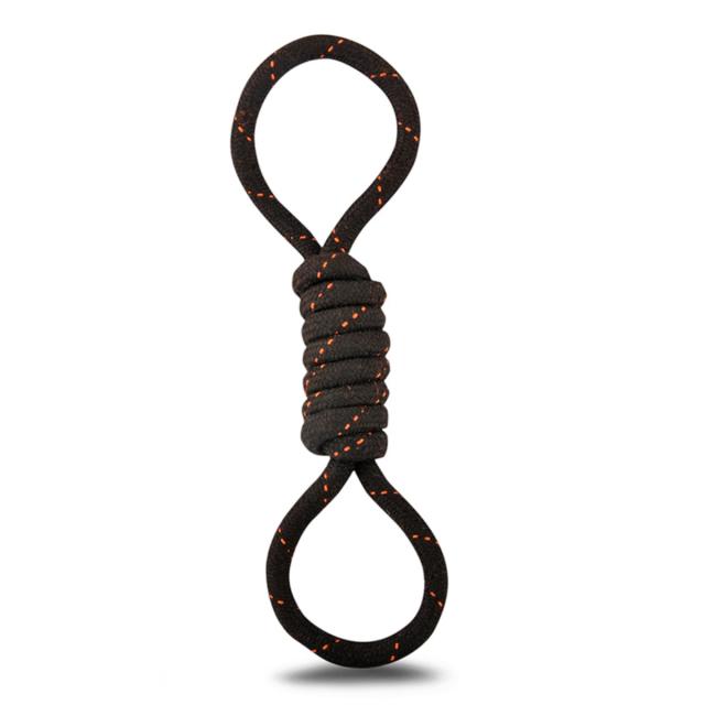 筒状に巻いたロープの両端に2つの輪が付いている犬用のおもちゃです。丈夫な素材を使用してしっかりとした作りにしているため、噛む・引っ張る・追いかける等が大好きなワンちゃんと楽しく遊ぶことができます。