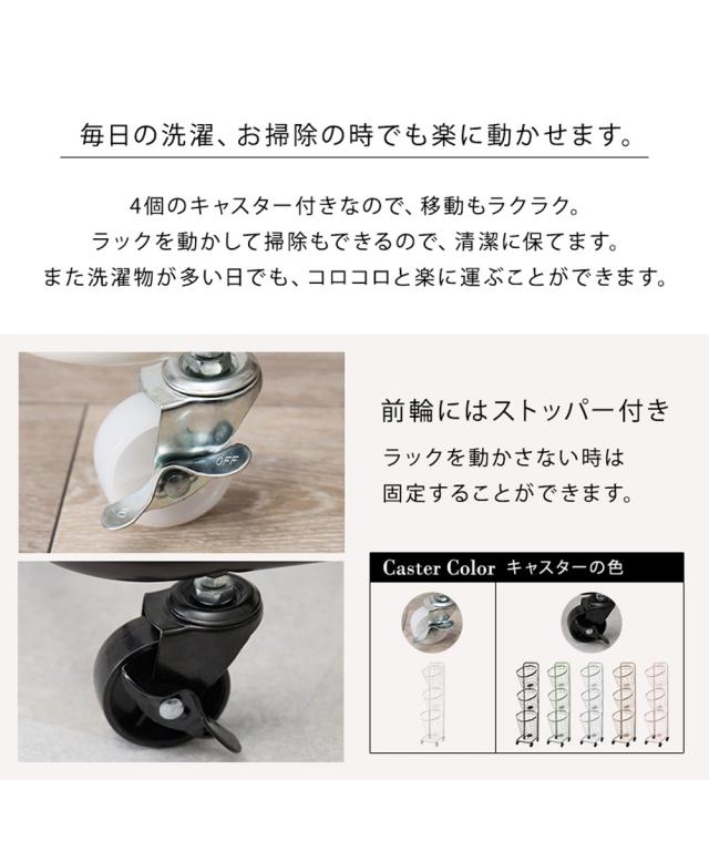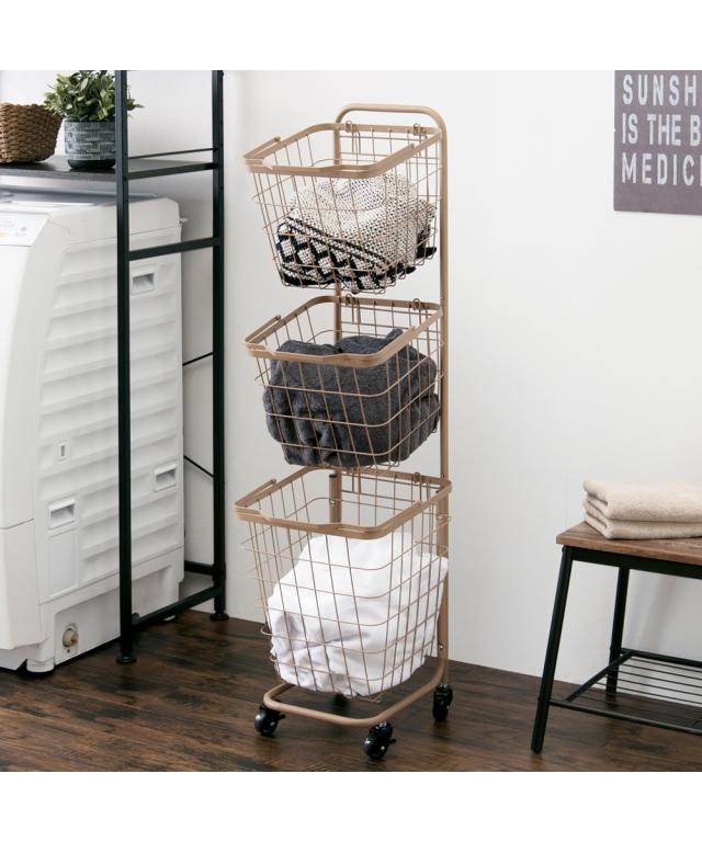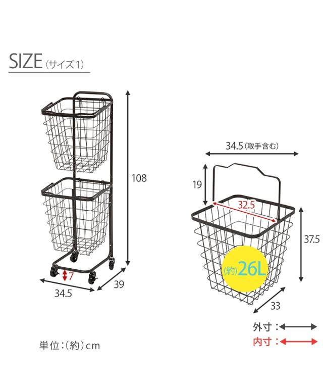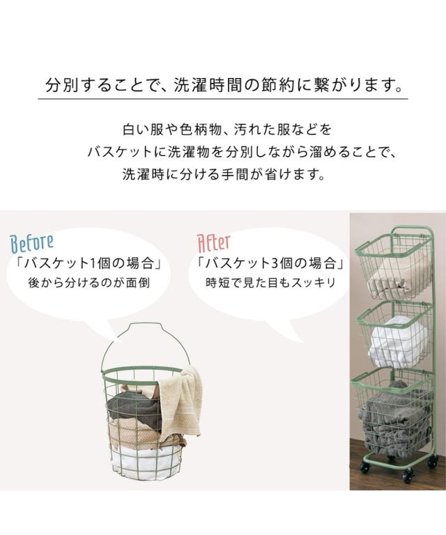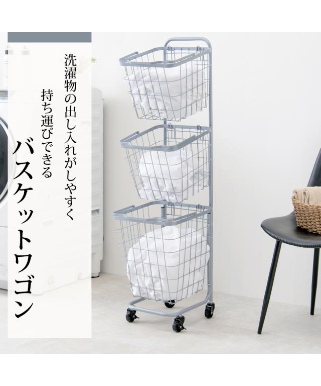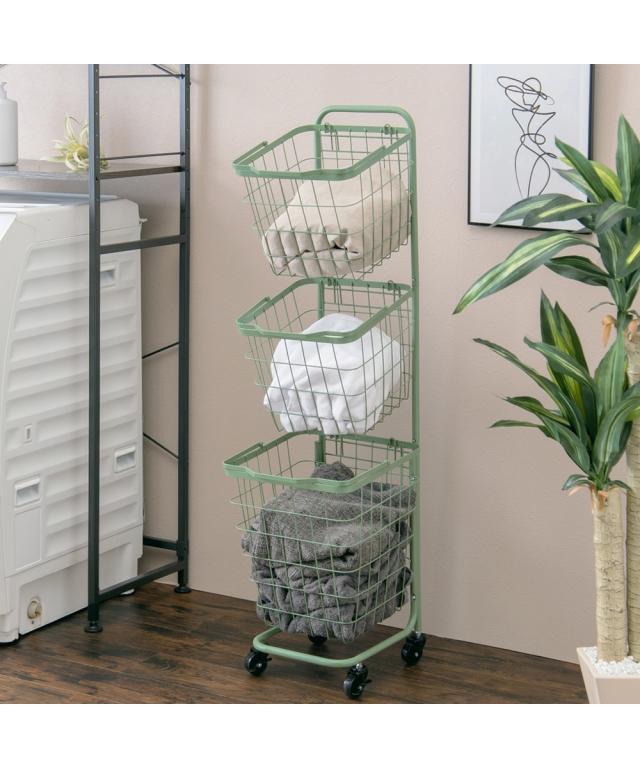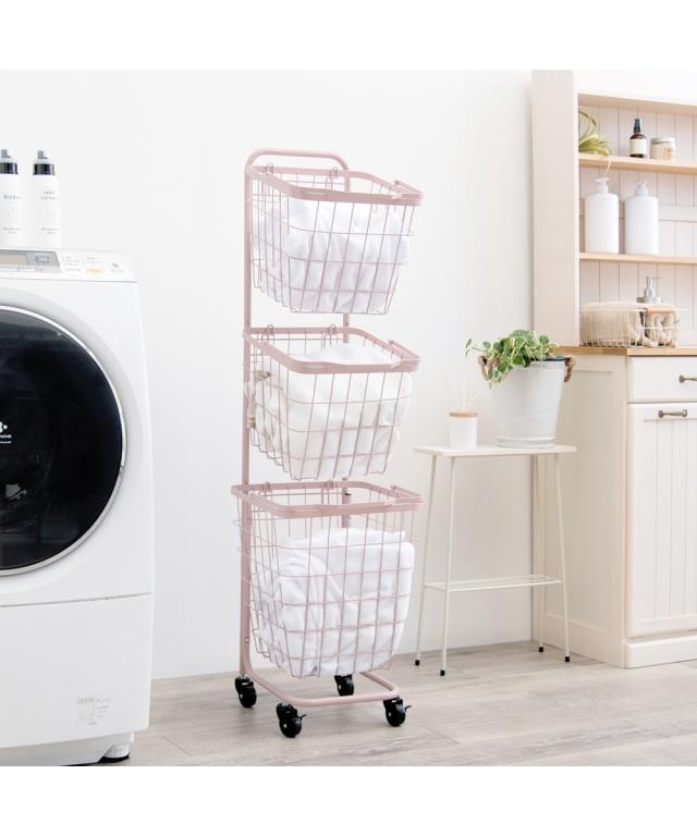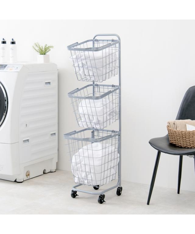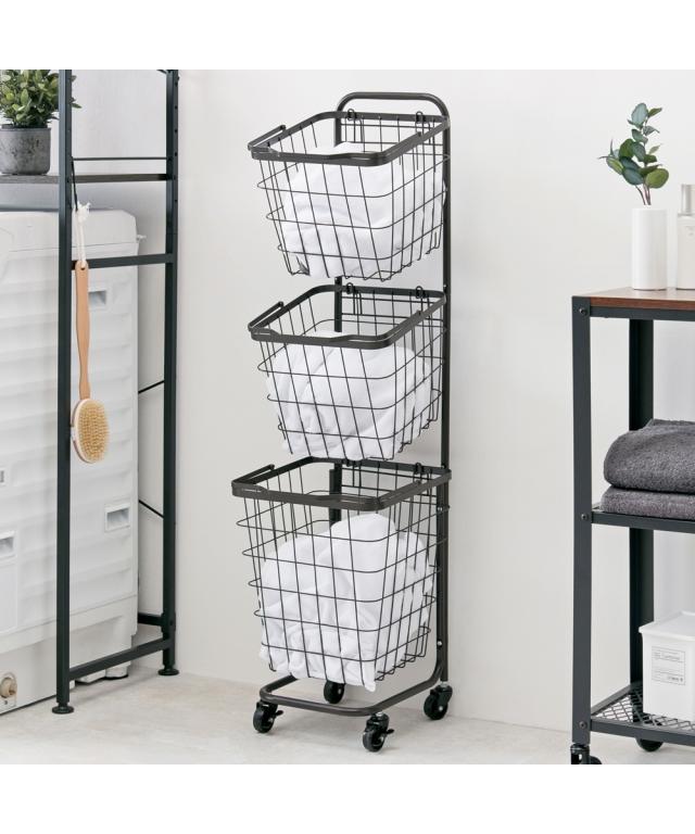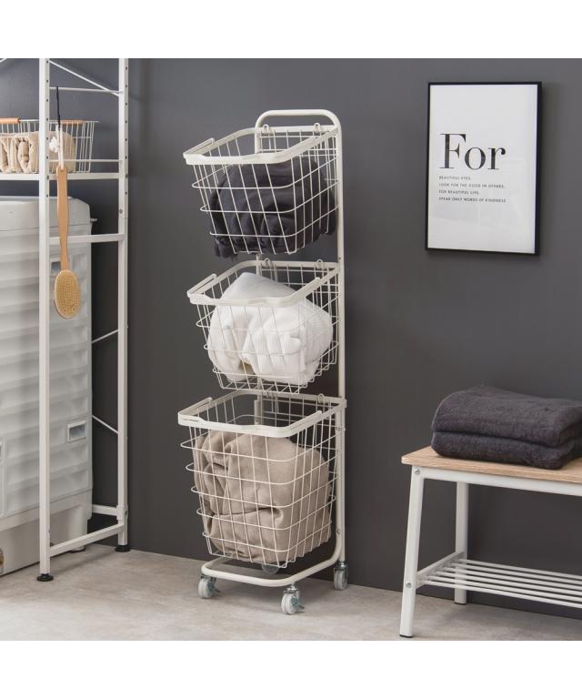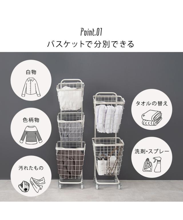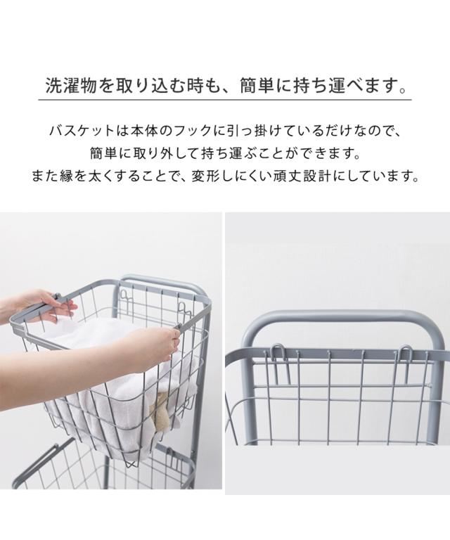 洗濯物の仕分けに便利な、取り外し可能なバスケットワゴン。シンプルなデザインで、ランドリー周りをすっきりとさせてくれます。フレームにはキャスターも付いているため移動もラクラク!場所も取らないので色んなお部屋で収納ワゴンとしてお使いいただけます!