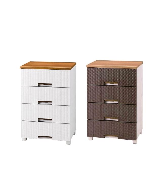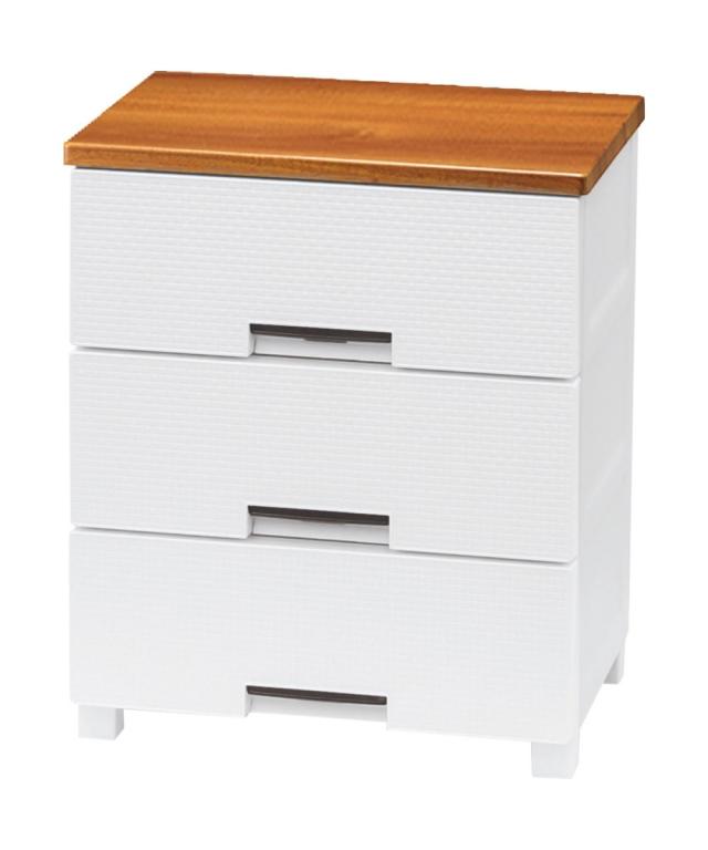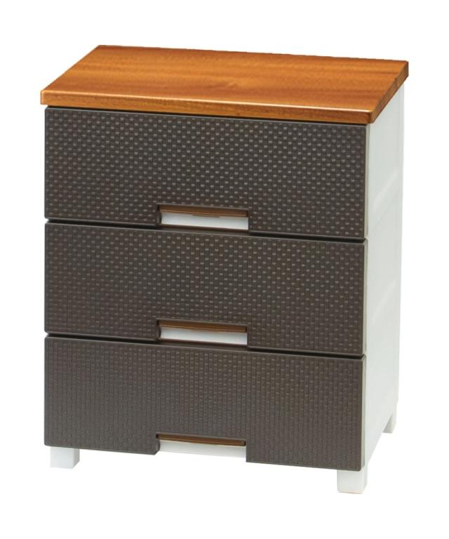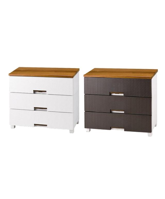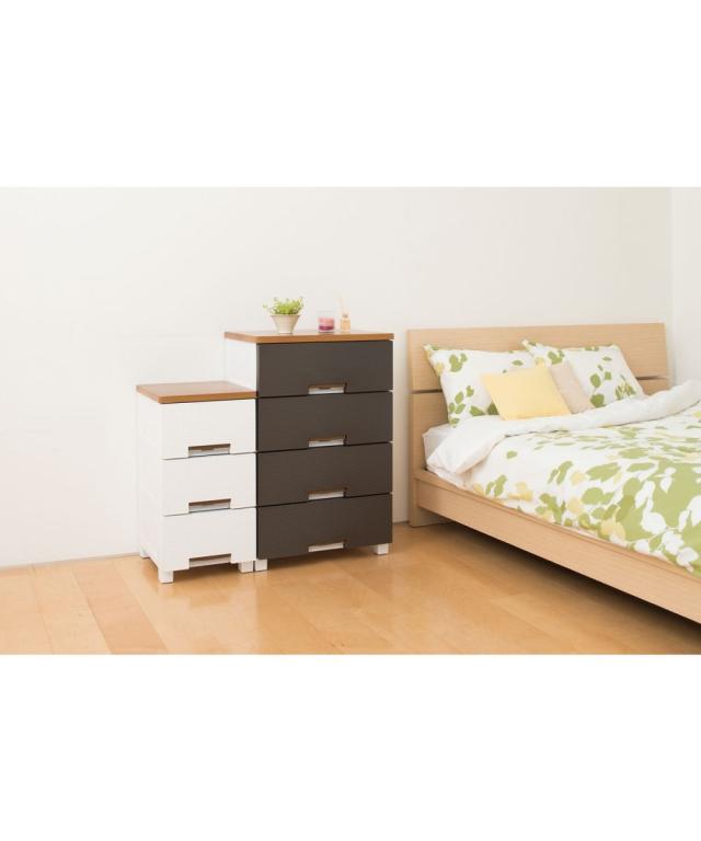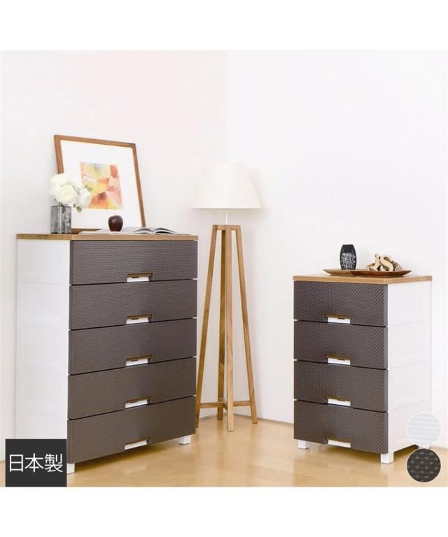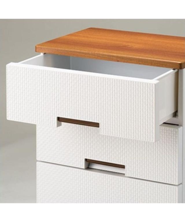 [keyword] 家具 収納 インテリア プラスチック 樹脂 シンプル ベーシック 定番 おしゃれ [comment] 引き出し前面に立体的なメッシュ柄を施した上質な雰囲気を兼ね備えたフィッツプラスメッシュ。◆天板はシックな木目調で、本や小物も置けます。 収納力とインテリア性がある樹脂チェスト。◆ベッドサイド収納にも使用できます。 木天板は小物を置くことができる耐荷重約15kg設定です。◆こだわり仕様・・・スムーズな引き出し感 側面・背面構造でホコリの侵入をガード 飛び出しを抑えるロック機能付 すべり止め付専用脚◆引き出しに簡易ロックが付いているので、不意な飛び出しを抑えます。 また、サイドローラー内蔵でスムーズな引き出し感です。 さらに、引き出しを引きすぎて落下する危険の無い、引出し落下防止機構付きです。◆横面も背面も壁になっているので、ホコリが侵入しにくい構造となっています。◆選べるカラー ブラウン、白の2色展開です。◆届いてすぐ使える完成品でお届けします ※梱包状態はご注文個数によって異なります。※商品が破損していた場合 お届け時点での不良・破損の場合、すぐに交換の手配をさせていただきますので、お電話または問い合わせフォームにてご連絡いただき