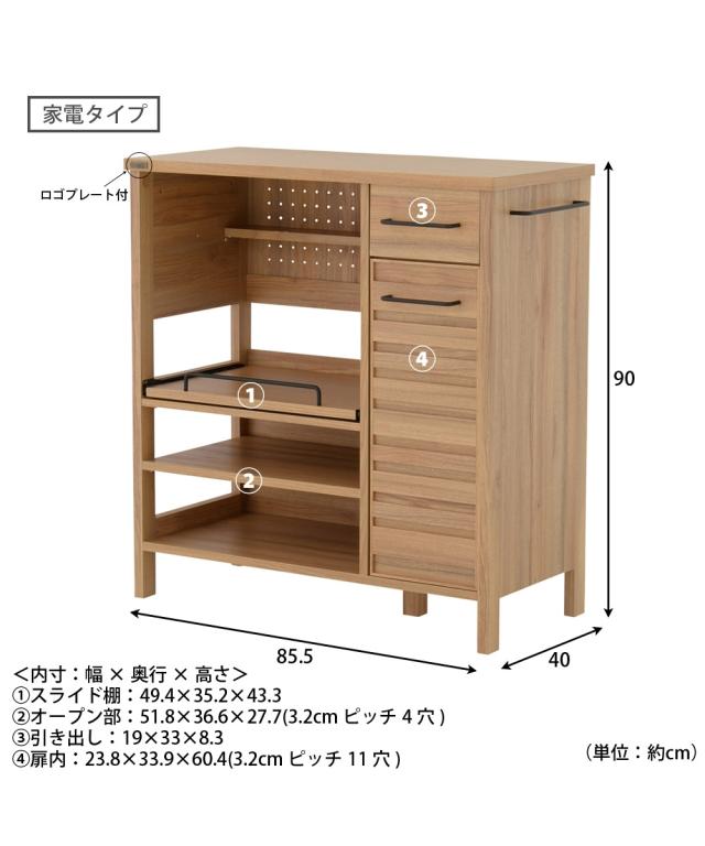 キッチン収納 シンプル レンジボード 幅85.5cm 家電タイプ/ラックタイプ