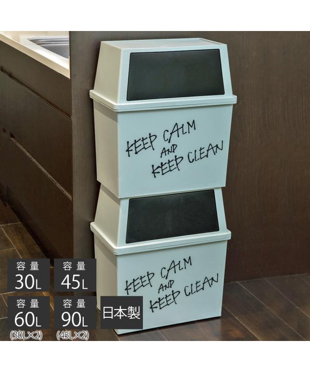【日本製】上下に分別できるワイドダストボックス(ゴミ箱) 45L