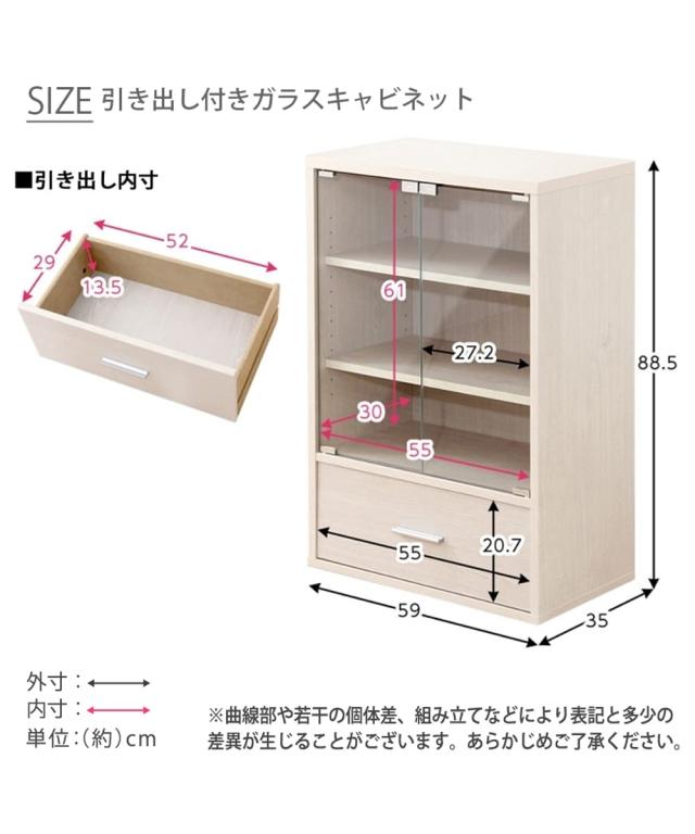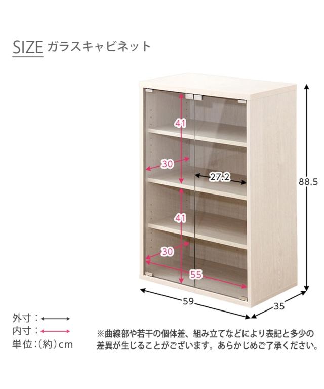 ●材質:本体=プリント紙化粧繊維板、その他=ガラス ●可動棚(約3cmピッチ):サイズ1・3=各1枚、サイズ2・8・11=各2枚、サイズ9=3枚※突っぱり商品を畳の上に設置すると滑りやすく転倒の恐れがありますのでご遠慮ください。また、天井・床に強い圧力が加わりますので強度を確かめた上でご使用ください。 原産国:中国製 備考:●商品重量:(約)サイズ5=16kg、サイズ8=19.5kg、サイズ9=18kg、●耐荷重:(約)サイズ5=天板:15kg・連結時下部での使用:30kg、サイズ8=天板:15kg・連結