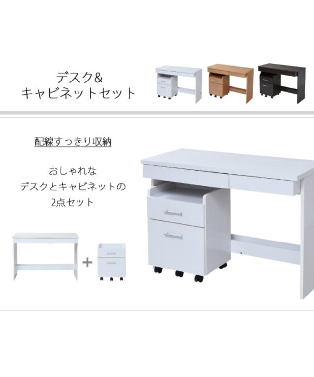 デスク セット コンパクト 配線すっきり チェスト付き