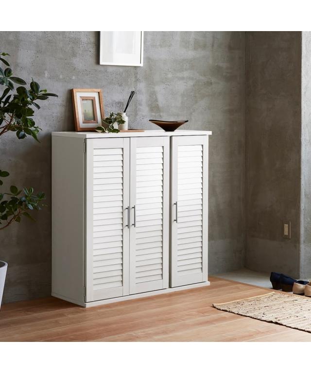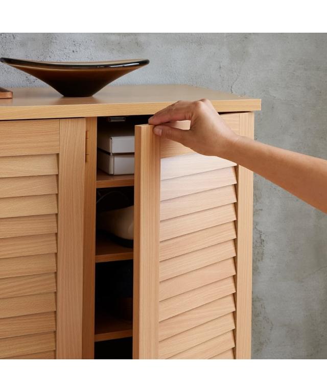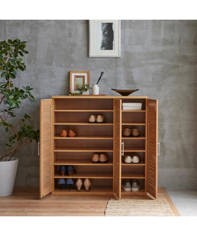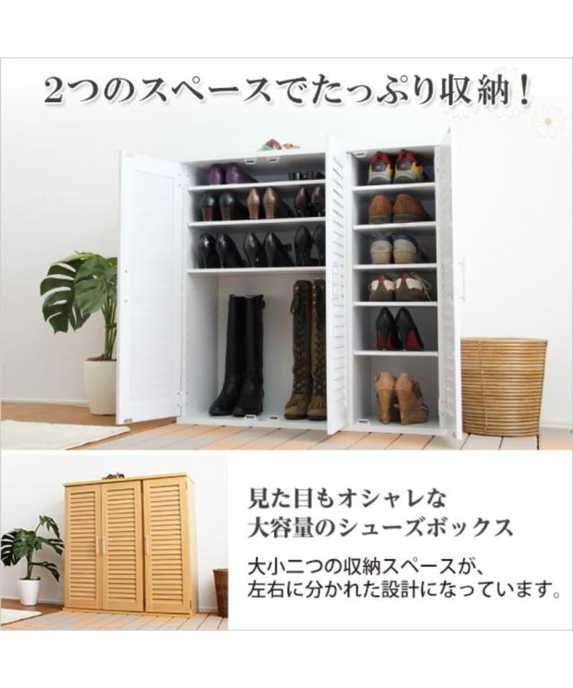 [keyword] 家具 収納 インテリア シンプル ベーシック 定番 おしゃれ ナチュラル 一人暮らし 大学生 社会人 ワンルーム 1K 1DK 新生活 [comment] 見た目もオシャレなルーバー仕様のシューズボックス。省スペースながら驚きの大容量収納を実現。たくさんの棚が散らかりがちな靴をたっぷりと収納してくれます。1台で2つの収納スペース!これで玄関がスッキリすること間違いなしです。
