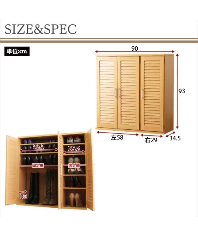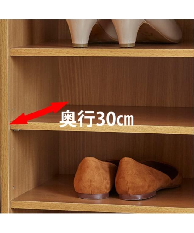 ●サイズ:(約)幅90×奥行34.5×高さ93cm ●材質:パーチクルボード・MDF・プリント紙化粧合板●可動棚(約3cmピッチ):10枚●商品重量:(約)33.5kg●天板耐荷重:(約)15kg●婦人靴収納足数:(約)28足※連結金具、連結用ダボ付属 原産国:●インドネシア製 備考:<梱包サイズ> 個口数:1つめ 縦×横×高さ:96.5×38×14cm 重量:19kg 個口数:2つめ 縦×横×高さ:96.5×38×13cm 重量:16.5kg ●組立時間:(約)30分