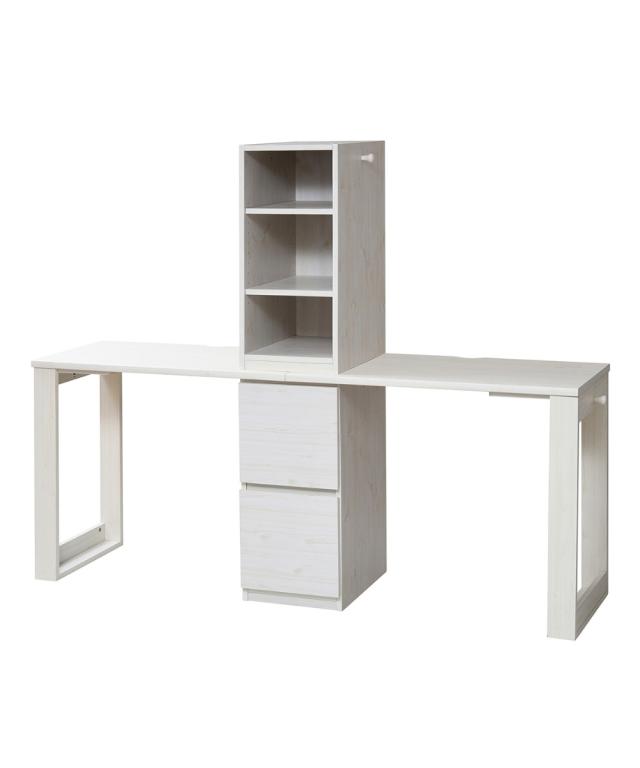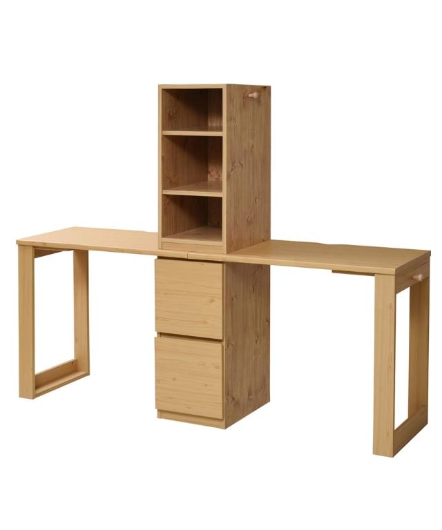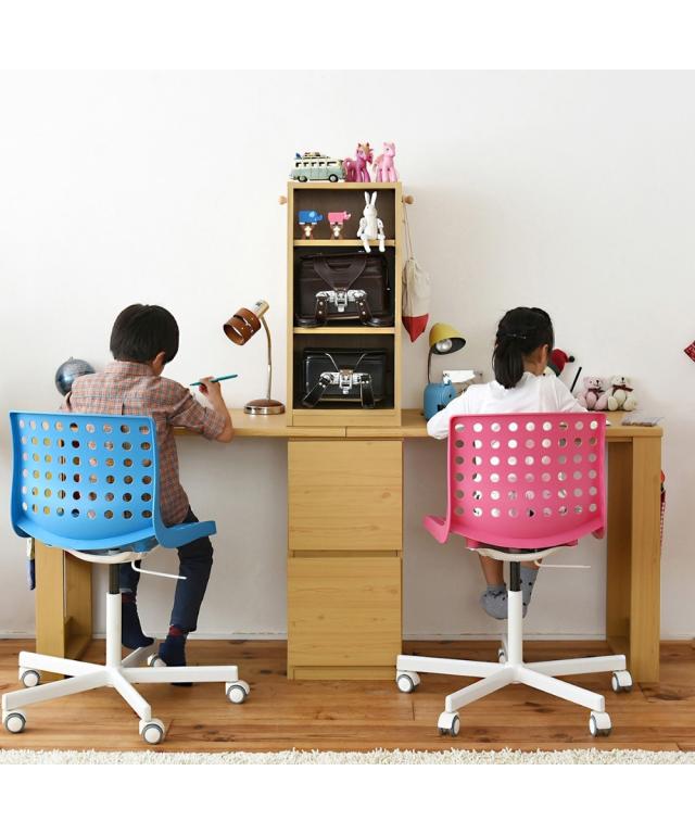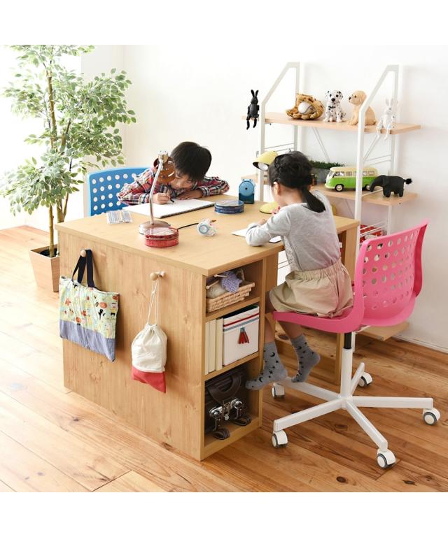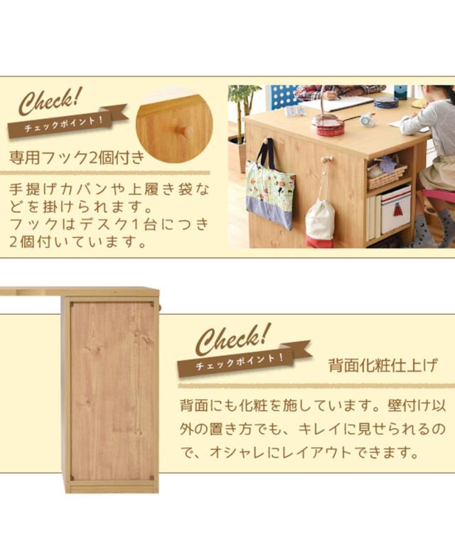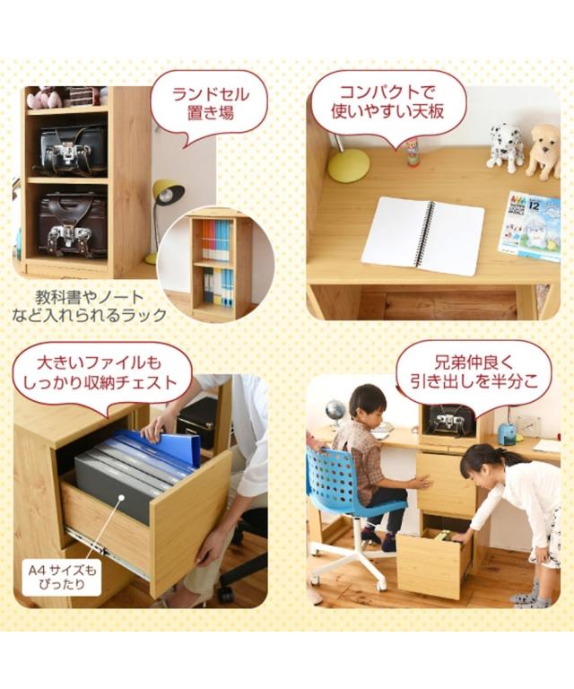 [keyword] 子供服 子供用品 家具 収納 インテリア シンプル ベーシック 定番 おしゃれ ナチュラル [comment] 木目調が優しい印象を与える白とナチュラルの2カラー。ラックとチェストがついている省スペースなデスクです。積み重ねても横に並べても自由に使えます。A4ファルや教科書が入る便利な設計。