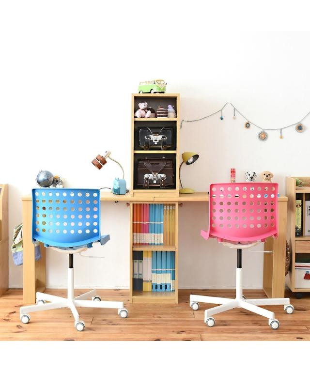 [keyword] 子供服 子供用品 家具 収納 インテリア シンプル ベーシック 定番 おしゃれ ナチュラル [comment] ラックの位置が変えられ、お部屋に合わせて2つのデスクをくっつけたり離したりと様々なコーディネートが楽しめます。