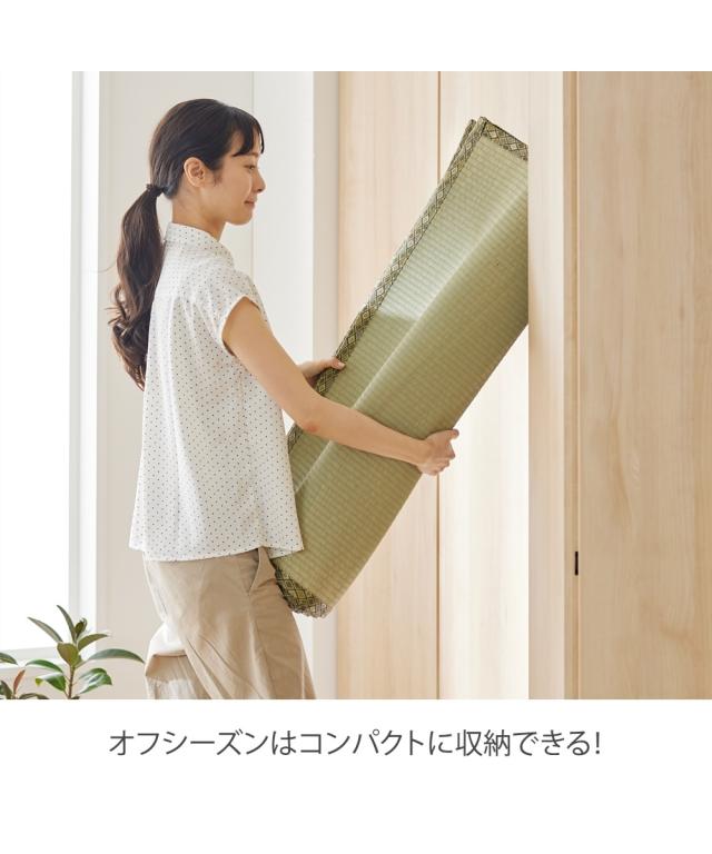 [keyword] インテリア 涼感 暑さ対策 夏 涼しい クール 抗菌 菌 はっ水 レジャー 外 撥水 雨の日 汚れ おでかけ 消臭 ニオイ イ草 天然素材 無地 無地調 柄 かわいい おしゃれ シンプル ベーシック 定番 オールシーズン 通年 春 秋 冬 年中 一年間 夏用 サマー [comment] 日本の高温多湿な風土に適した、畳素材のい草カーペットです。い草が持つ消臭効果・抗菌効果・調湿効果がクリーンな空間を作り出してくれます。優れた調湿効果でオールシーズンさらっと快適にお使いいただけます。表面には撥水加工を施しており、水をこぼしても、さっと拭き取れてお手入れもラクラクです。新しい畳のカバーとして、古くなった畳の代わりにと活躍してくれます。豊富な18サイズをご用意しておりますので、ぴったりサイズがきっと見つかります!