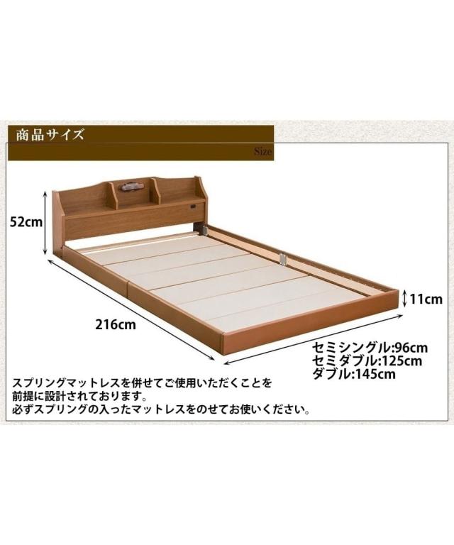 ベッド 棚 コンセント 照明 付き合皮張りロー セミダブルフレームのみ