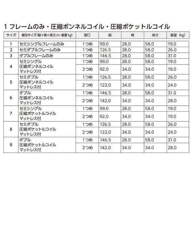 ・ セミシングルフレームのみ はこちら ・ セミダブルボンネルコイルマット付 はこちら ・ ダブルボンネルコイルマット付 はこちら ・ セミシングルボンネルコイルマット付 はこちら ・ ダブルフレームのみ はこちら |