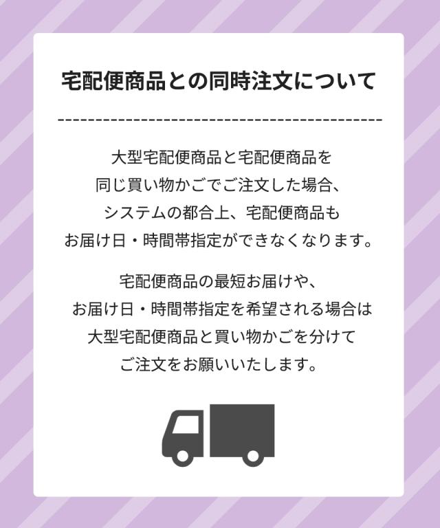「大型宅配便」商品は配達できない地域・お届け日指定をご利用いただけない地域がございます。 配達できない地域の一覧はこちら お届け日指定不可地域の一覧はこちら |