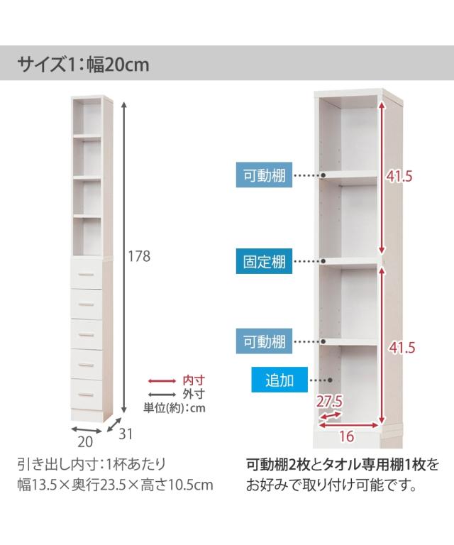 ラック サニタリー 鏡面隙間 収納 タオル ストッカー 幅20cmー30cm 幅20cm