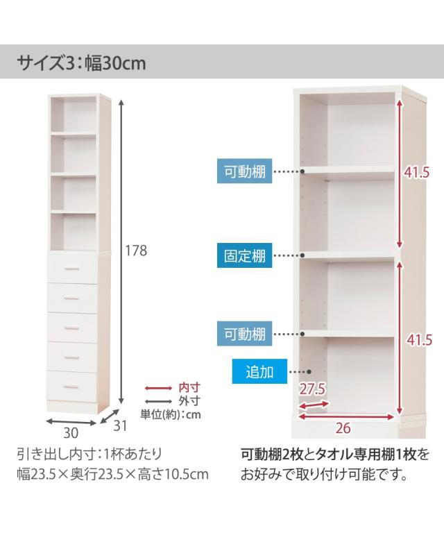 ラック サニタリー 鏡面隙間 収納 タオル ストッカー 幅20cmー30cm 幅30cm
