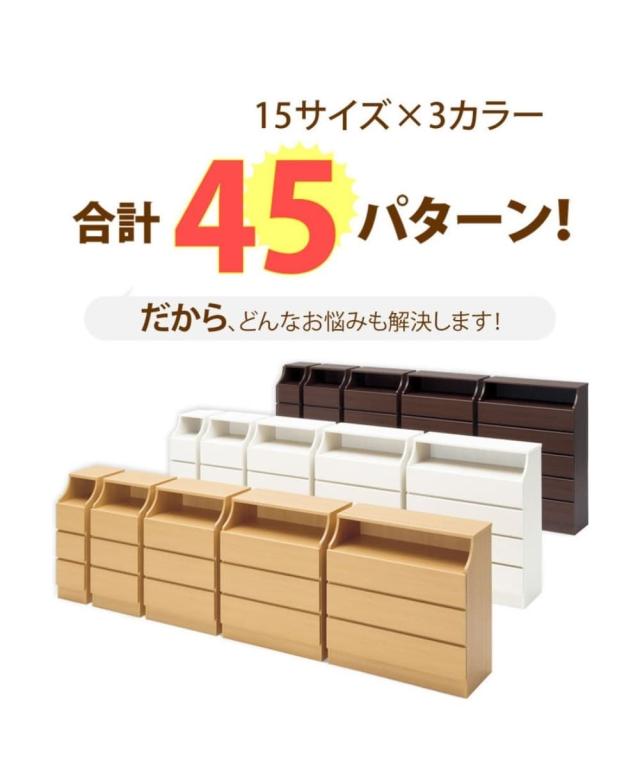[keyword] 家具 収納 インテリア 木製 シンプル ベーシック 定番 おしゃれ ナチュラル 一人暮らし 大学生 社会人 ワンルーム 1K 1DK 新生活 [comment] 豊富なサイズバリエーションのスタンダードなチェスト。木ダボやスライドレールは工場で取り付け済み。引き出しの組み立ては手で押し込むだけの工具入らずです。組み立てが苦手な方にもおすすめのチェストです。
