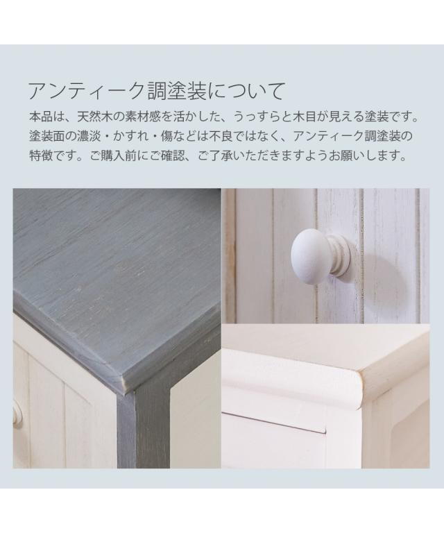[keyword] 家具 収納 インテリア 木製 天然木 シンプル ベーシック 定番 おしゃれ フェミニン 女 女性 レディース かわいい 女性らしい 大人 組立不要の完成品 完成 楽 一人暮らし 大学生 社会人 ワンルーム 1K 1DK 新生活 [comment] かすれたペンキや年月を経た木の質感など、長年愛用したようなアンティーク加工が施されたランドリーチェストです。ノスタルジックなシャビー感で空間を可愛らしく演出してくれます。組み立て不要の完成品なので、届いてすぐにお使いいただけます