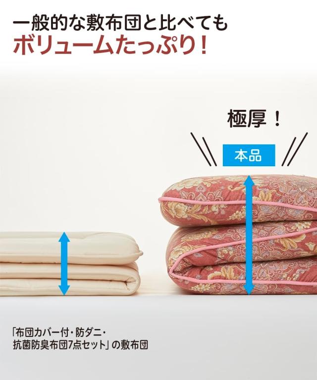 [keyword] カーテン ラグ 寝具 幾何学柄 柄 かわいい おしゃれ フェミニン 女 女性 レディース 女性らしい 大人 オールシーズン 通年用 春 夏 秋 冬 年中 一年間 一人暮らし 大学生 社会人 ワンルーム 1K 1DK 新生活 [comment] 厚みが約14cmあり、ふかふかで包み込まれるようなボリュームのある敷布団です。お布団の芯となる固わたが入っているので、床付き感が少なくフローリングにこれ1枚の使用でもしっかりと身体を受け止めてくれます。側生地は綿入り素材を使用しているので程よくサラッとした肌当たり。キルティング縫製ではなく昔ながらの「和綴じ」縫製を採用し、ふんわり感を重視しています。ゆっくりと贅沢気分を味わっていただける敷布団です。