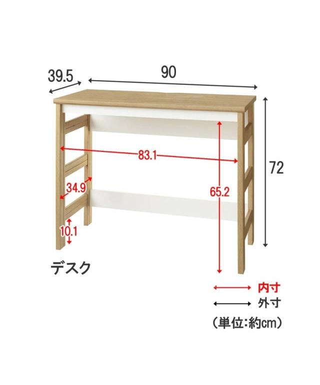 ●サイズ:(約)幅90×奥行39.5×高さ72cm ●材質:プリント紙化粧繊維板 ●商品重量:(約)11.2kg ●天板耐荷重:(約)20kg 原産国:●ベトナム製 備考:<梱包サイズ> 個口数:1つめ 縦×横×高さ:93×44×12cm 重量:12kg ●組立時間:(約)30分