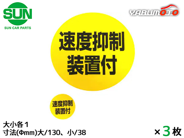 SUN 速度抑制装置付 ステッカー 大小各1枚×3 130mm/38mm 大型トラック 丸 黄色 黒文字 車検 国産 1217 メール便 送料無料