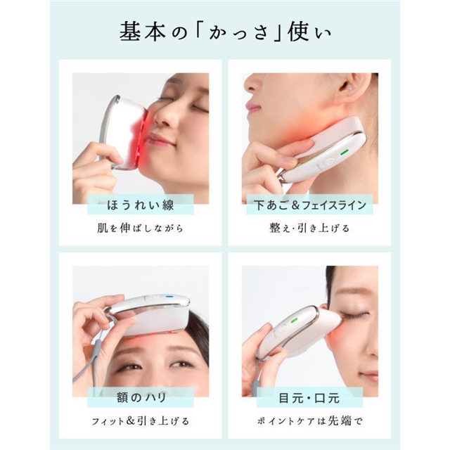 美顔器をはじめ、多くの一般美容器に見られる定番機能です。しっかり刺激が伝わる低周波。筋肉の動きをしっかり実感でき。4段階のレベル調整でお好みでお使いいただけ。