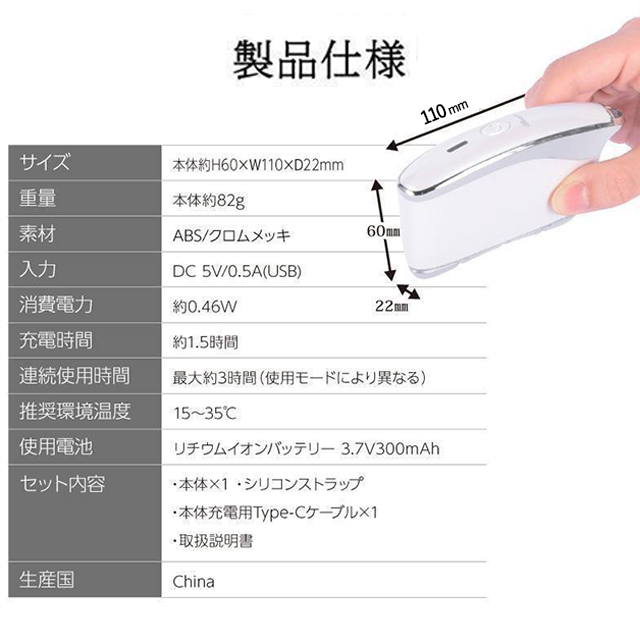 【使用電池】:リチウムイオンバッテリー 3.7V/300mAh