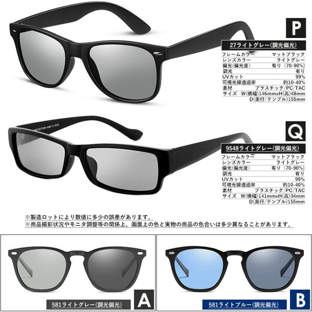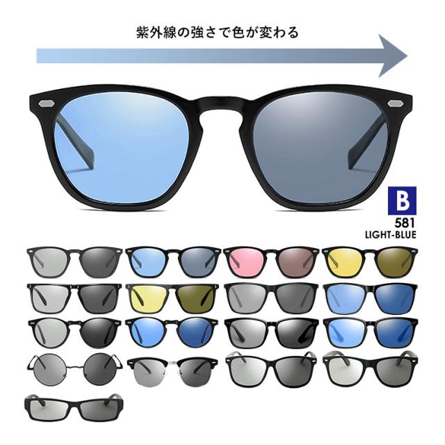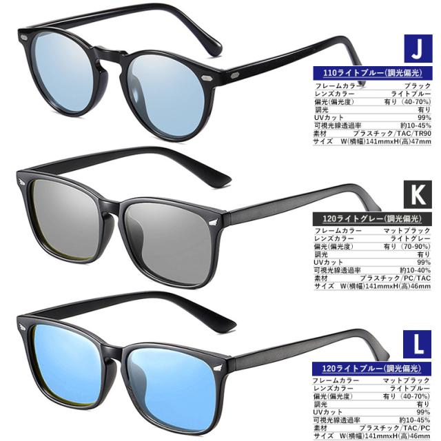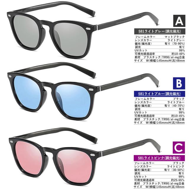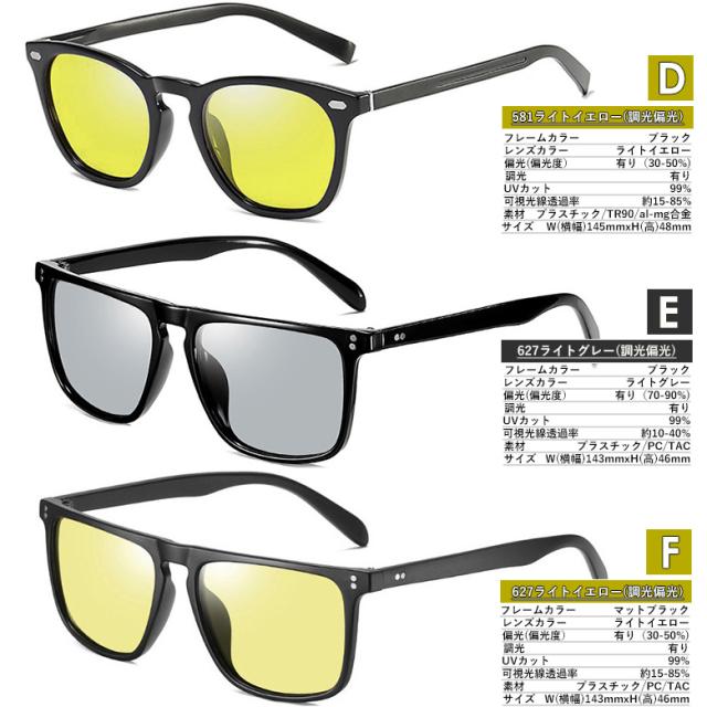 調光偏光サングラス U581など 調光サングラス 紫外線で色が変わる 薄い色 ウェリントン ボストン スクエア UVカット 変色 ライトカラー レンズ メンズ レディース共用