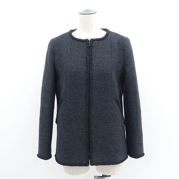 CHANEL / シャネル ◆レディース ウール ジャケット ココ グレー ジップアップ ノーカラー 【レディース/ガールズ】【中古】
