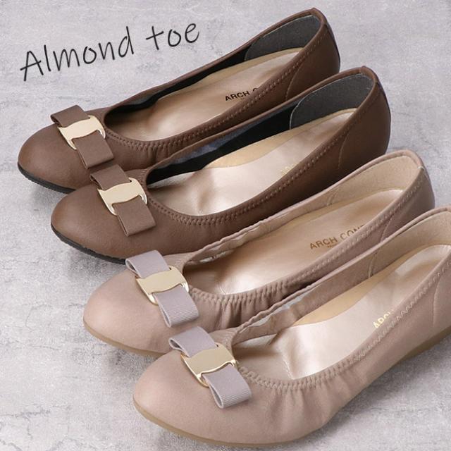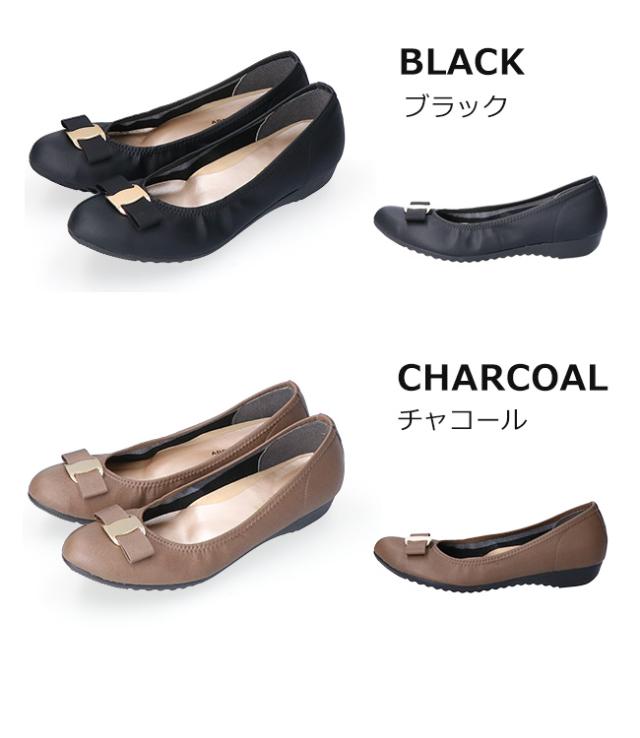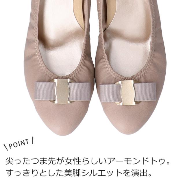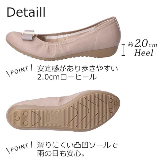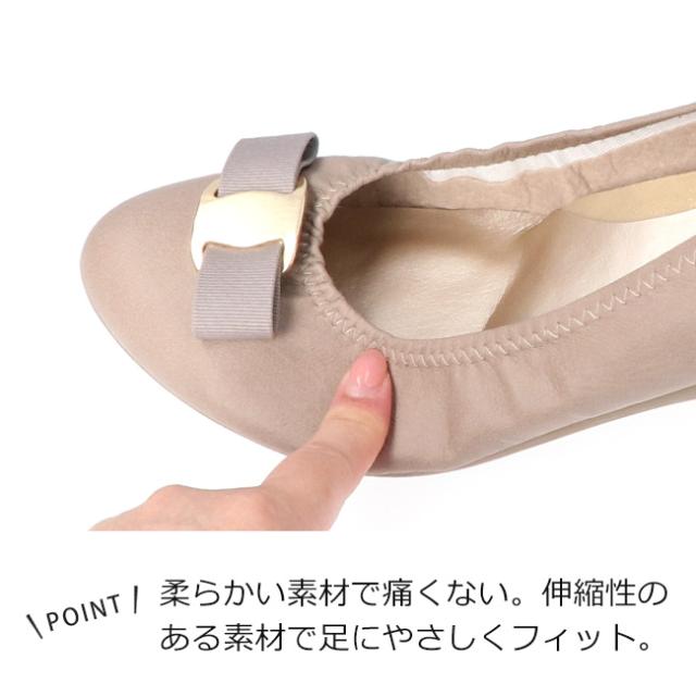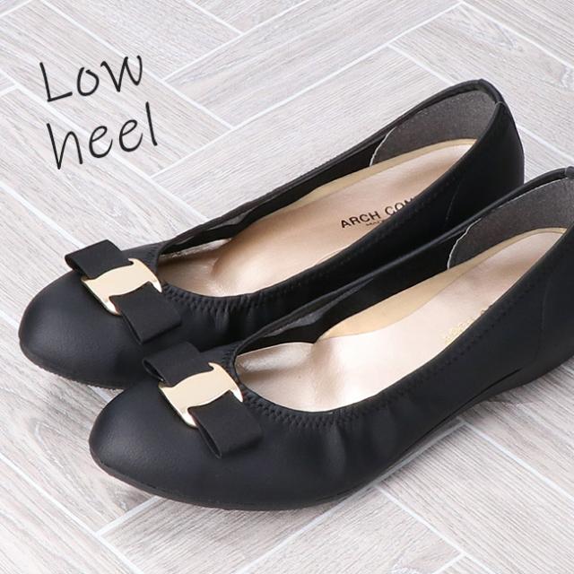 アーチコンタクト パンプス 疲れない 歩きやすい 痛くない ローヒール ラウンドトゥリボン 低反発 柔らかい 39194 日本製 靴