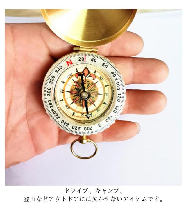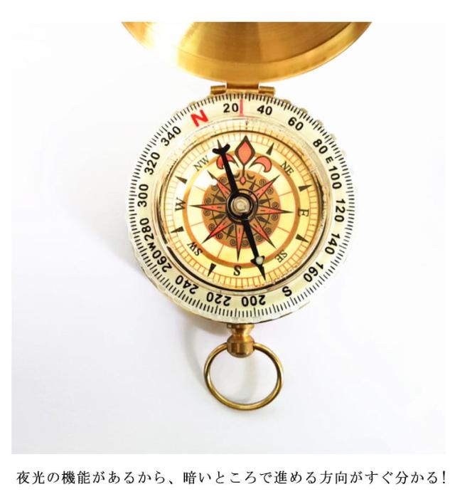 | レトロな雰囲気で旅行にも使用できるコンパス。 夜光の機能があるから、暗いところで進める方向がすぐ分かる! コンパクトなサイズで持ち運びに便利である! ドライブ、キャンプ、登山などアウトドアには欠かせないアイテムです。 | |