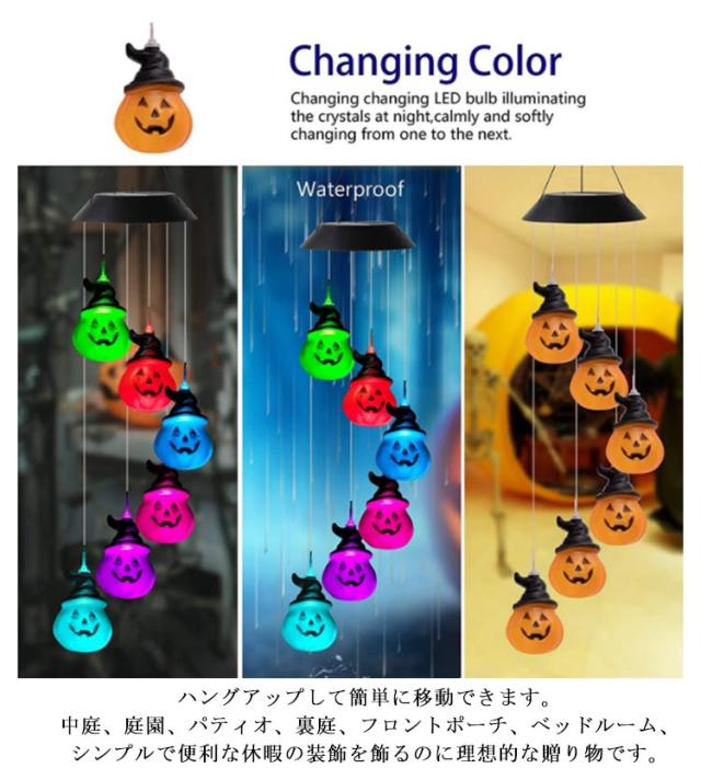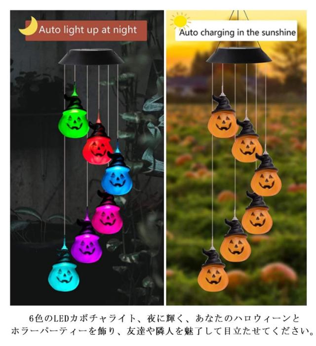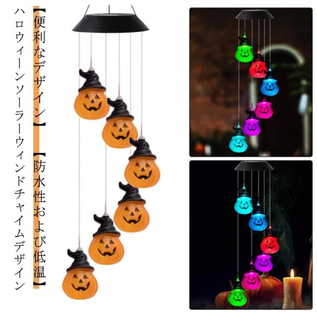 ソーラーライト ハロウィン カボチャ ガーデンライト 屋外 防水 LEDソーラーハロウィン風鈴ライト LED ガーデン 玄関 壁 園芸 店 ウィンドチャイム 常夜灯 ハロウィン装飾ライト ソーラーカボチャ風鈴ライト おしゃれ 間接照明 吊り下げ インテリア