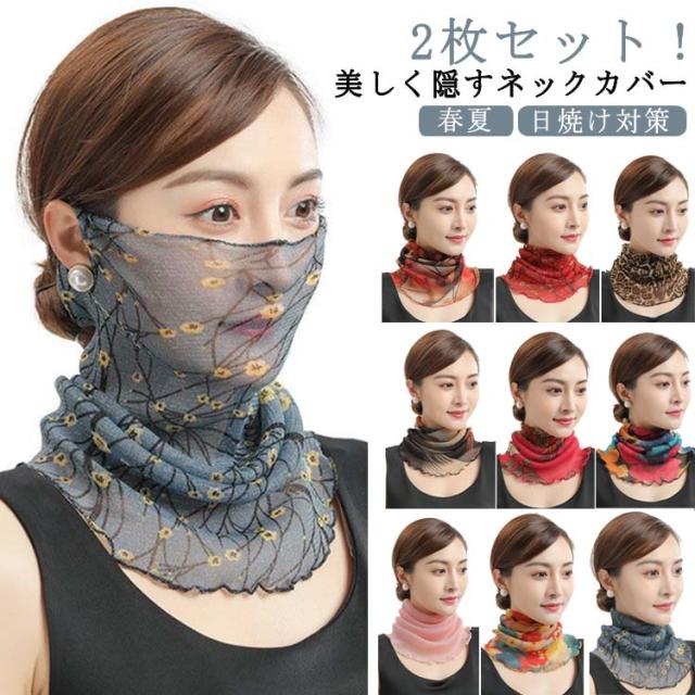 2枚セット ネックカバー レディース 首 シワ隠し ネックウォーマー スカーフ おしゃれ 首巻き 傷隠し 日焼け対策 薄手 春夏 夏 UVケア きれいめ 小物