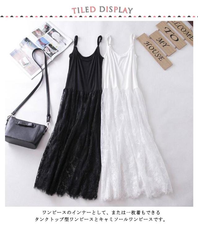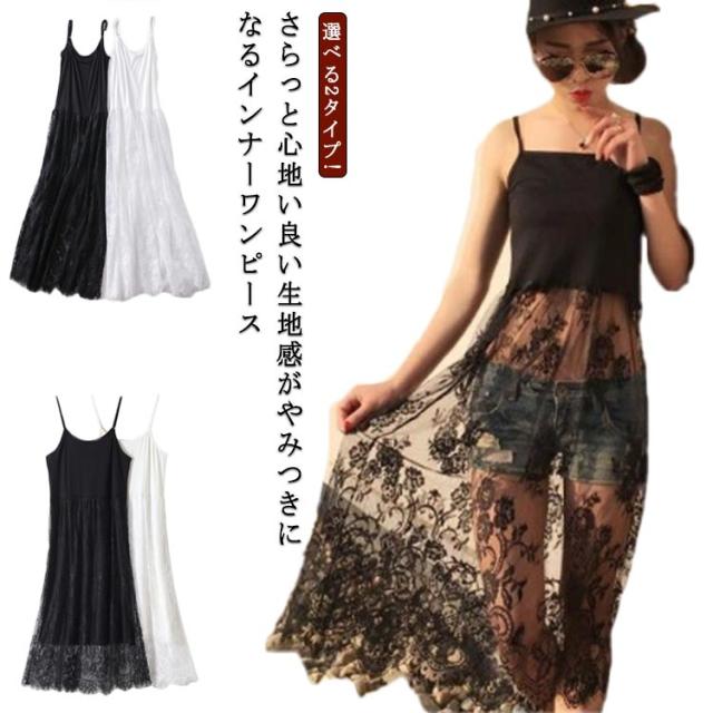 刺繍 スカート キャミワンピース レース ホワイト ロング レディース タンクトップ キャミソール インナー ペチコート キャミソール タンクトップ ワンピース インナー ワンピ 重ね着 体型カバー ナチュラル 無地 インナーワンピース